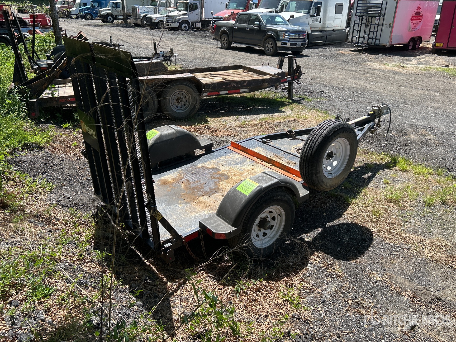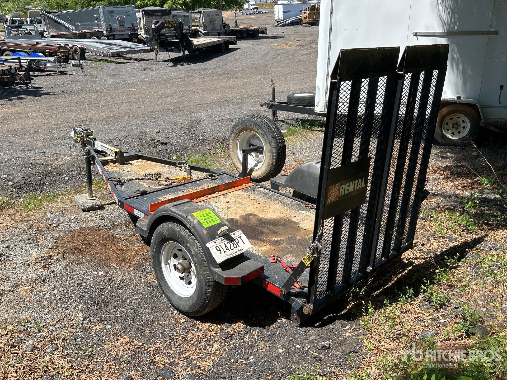 Ball Hitch, Spring Suspension, Surge Brakes, 7 ft Main Deck, 48 in Usable Deck Width, 50 in Overall Deck Width, Manual Ramps, Steel Decking, 225/75R15 Tires, 4400 lb GVWR