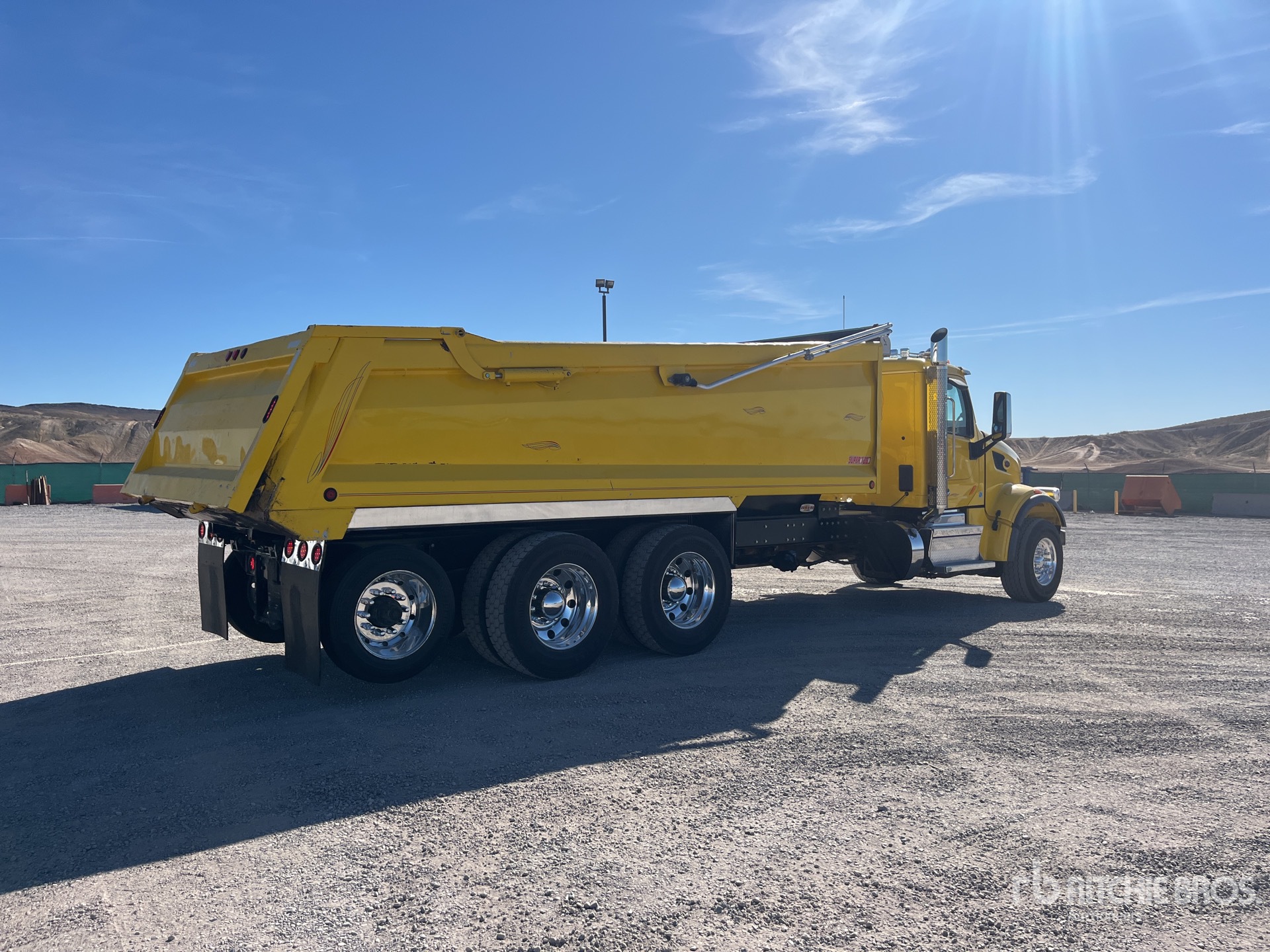 Located in Lane 5 Spot 3, Cummins X15 6 Cylinder 15 L Diesel 500 hp Engine, 2021 US EPA Label, Requires Diesel Exhaust Fluid, Engine Brake, Automated Transmission, Differential Lock, 19840 lb Front Axle, 40000 lb Rears, 58000 lb GVWR, Air Ride Cab, Aluminum Wheels, 385/65R22.5 Front Tires, 11R24.5 Rear Tires, Trailing Tag Axle, Dual Steering Boxes, Double Frame, Air Trac Air Ride Suspension, 266 in Wheelbase, PTO, Hydraulic System, Superior 20 ft Long x 3 ft 4 in High Steel Body, Electric Roll Tarp, Air High-Lift Tailgate, ; Equipment-from-Lakeside-Specialized-Transportation ;