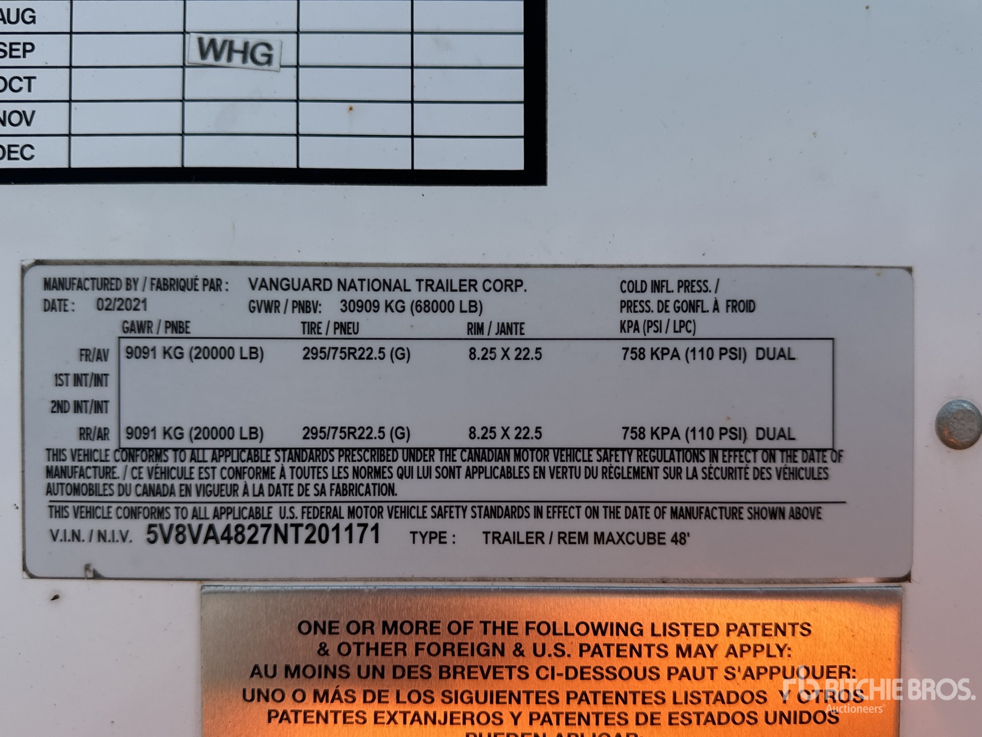 68000 lb GVWR, Spring Suspension, Air Brakes, Sliding Suspension, Aluminum Roof, Hardwood Floor, Roll-Up Door, 295/75R22.5 Tires