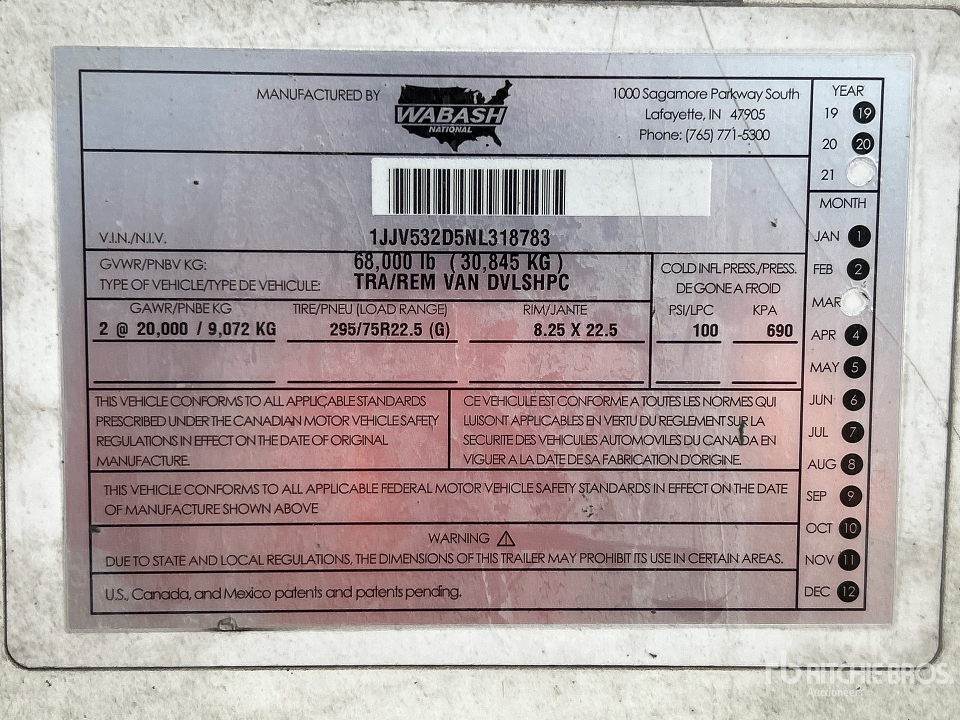 Aluminum/Steel Combination Frame, Spring Sliding Suspension, Hardwood Floor, Swing Door, 295/75R22.5 Tires 68000 lb GVWR