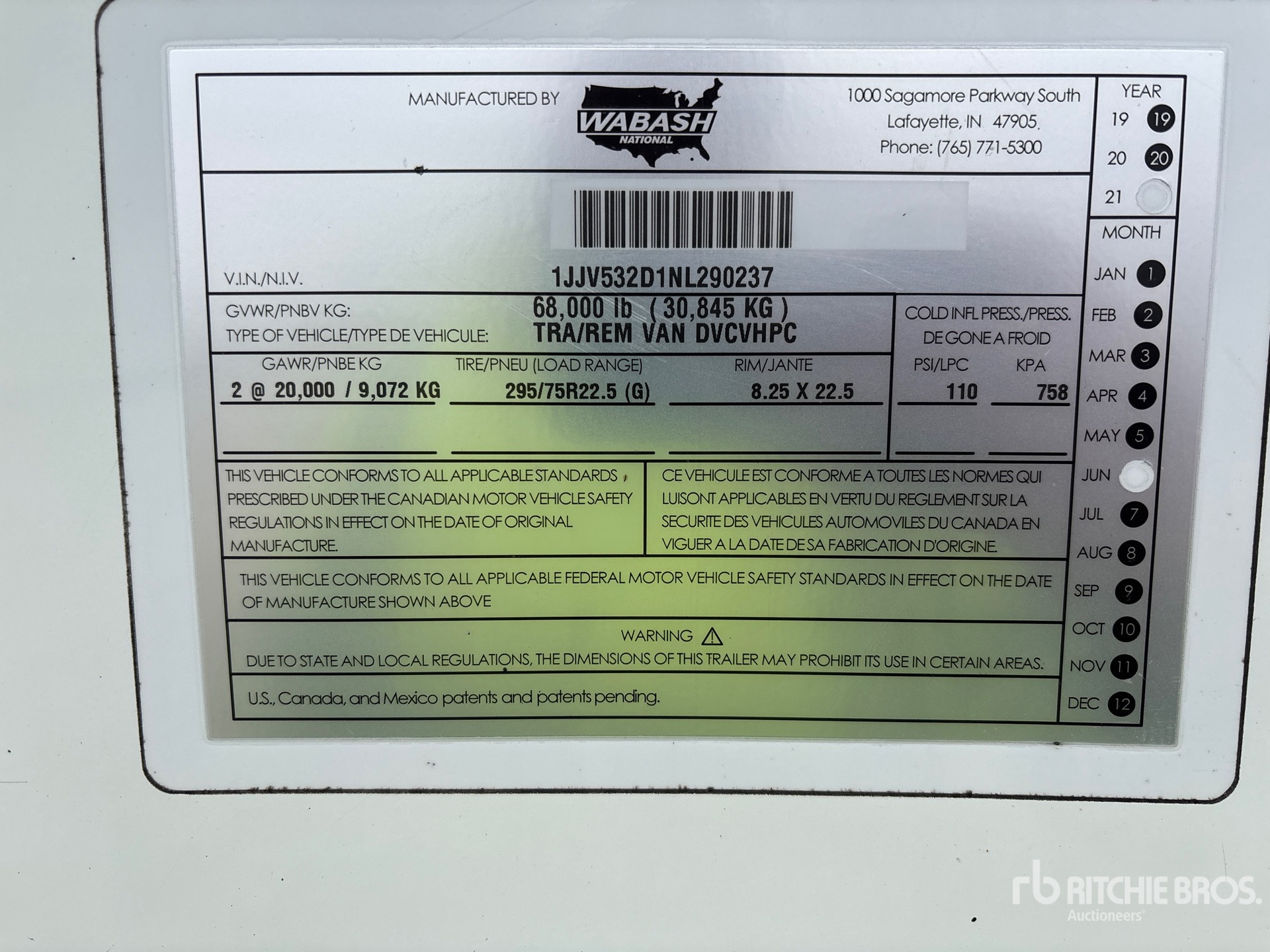 Located in Lane 32, Air Ride Sliding Suspension, Hardwood Floor, Swing Door, 295/75R22.5 Tires 68000 lb GVWR