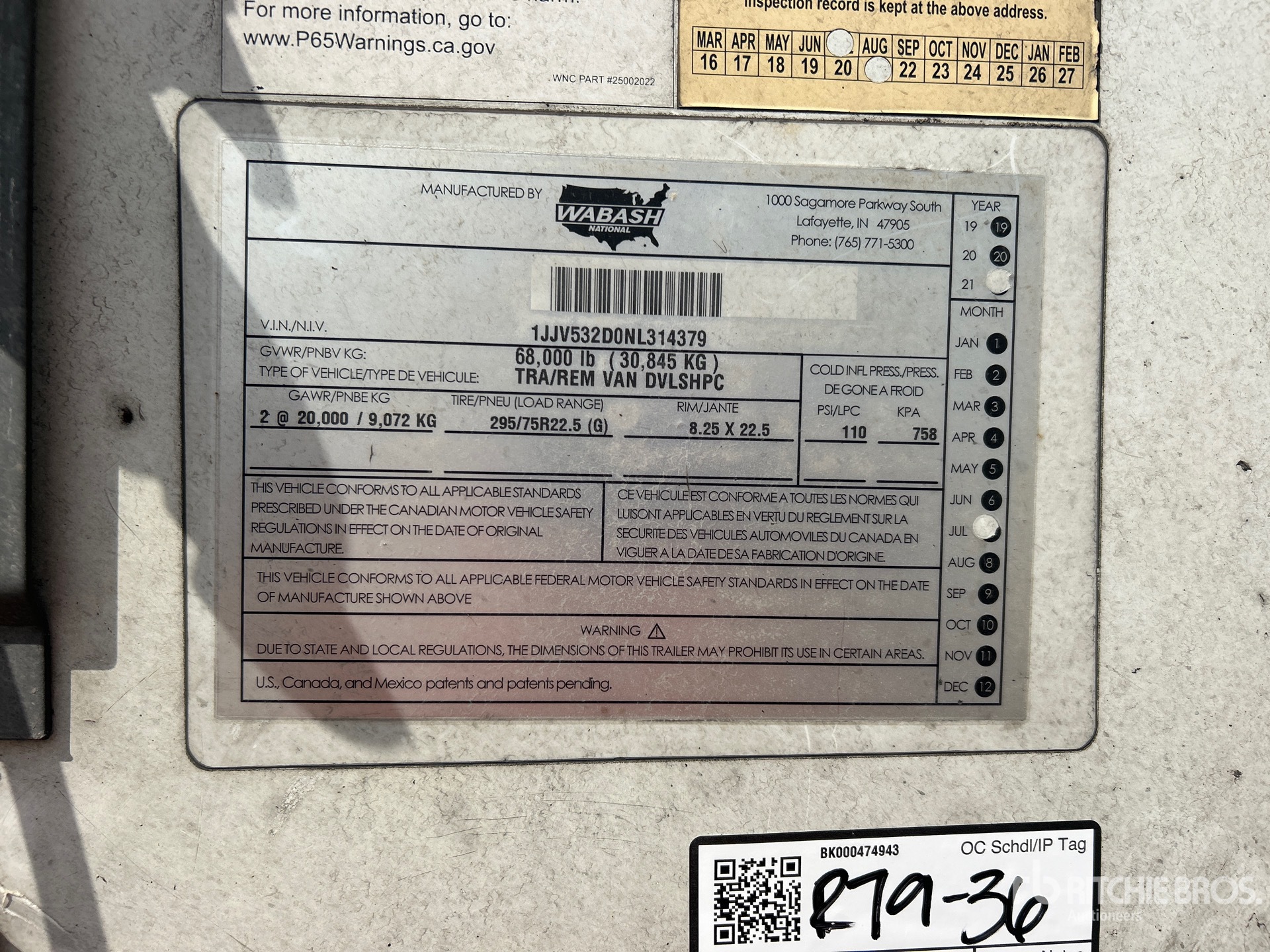 Air Ride Sliding Suspension, Hardwood Floor, Swing Door, 275/80R22.5 Tires, 68000 lb GVWR