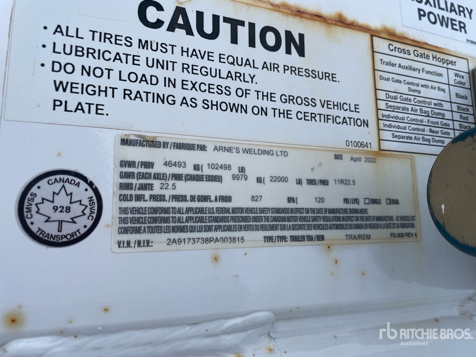 Air Ride Suspension, Air Brakes, Clam Gate, Manual Roll Tarp, 11R24.5 Tires, 102498 lb GVWR, Complete-Retirement-Dispersal-for-K-McIntosh-Sons-Construction-Supply-Ltd