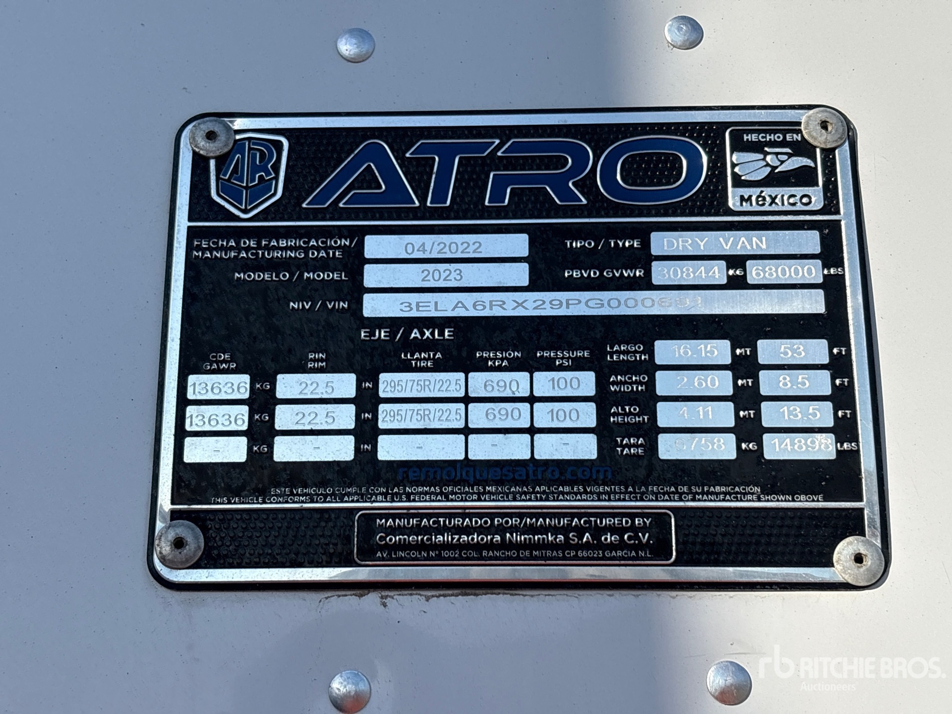 Air Ride Sliding Suspension, Side Skirts, Hardwood Floor, Swing Door, 295/75R22.5 Tires 68000 lb GVWR