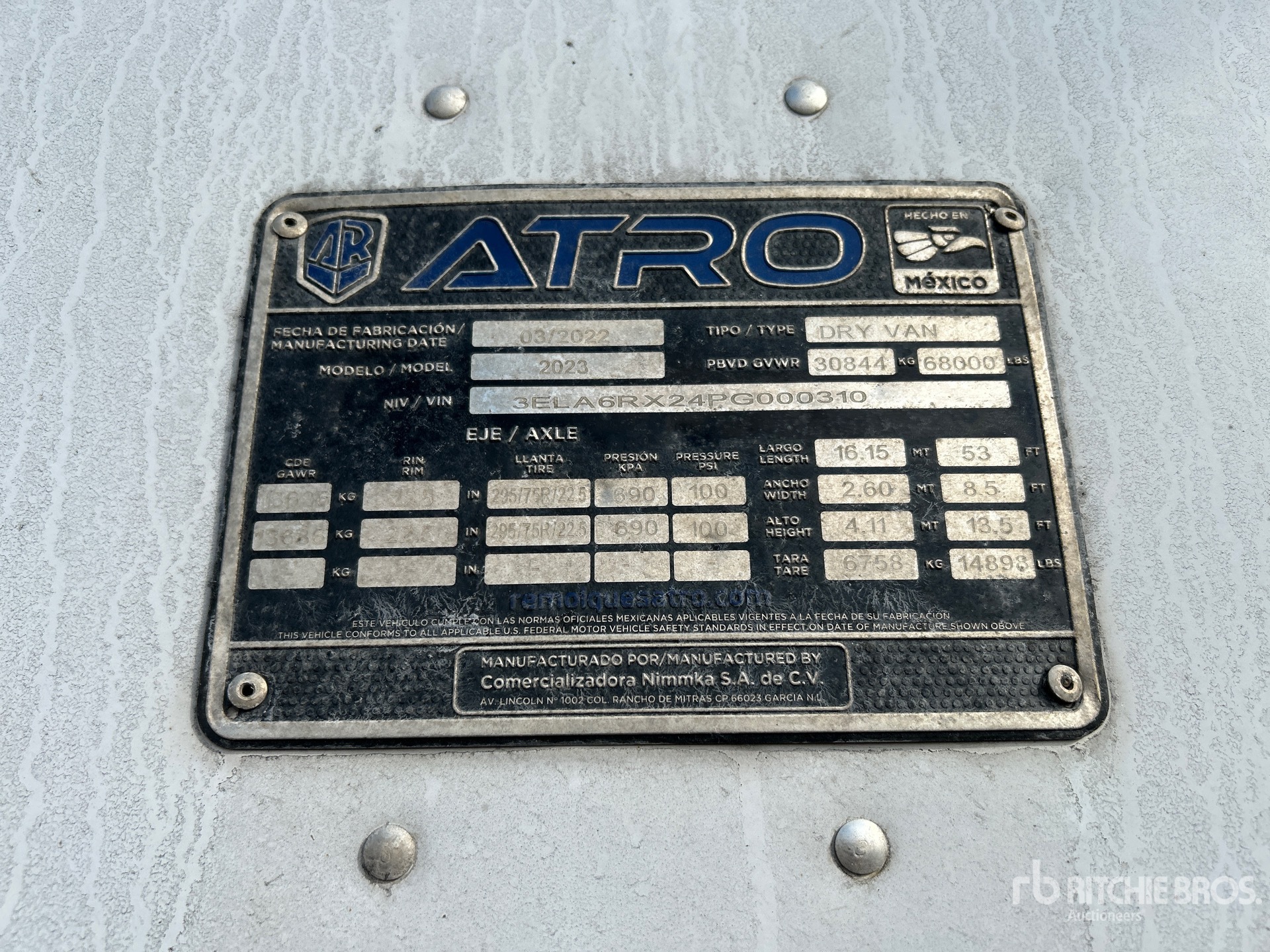 Air Ride Sliding Suspension, Hardwood Floor, Swing Door, 295/75R22.5 Tires 68000 lb GVWR