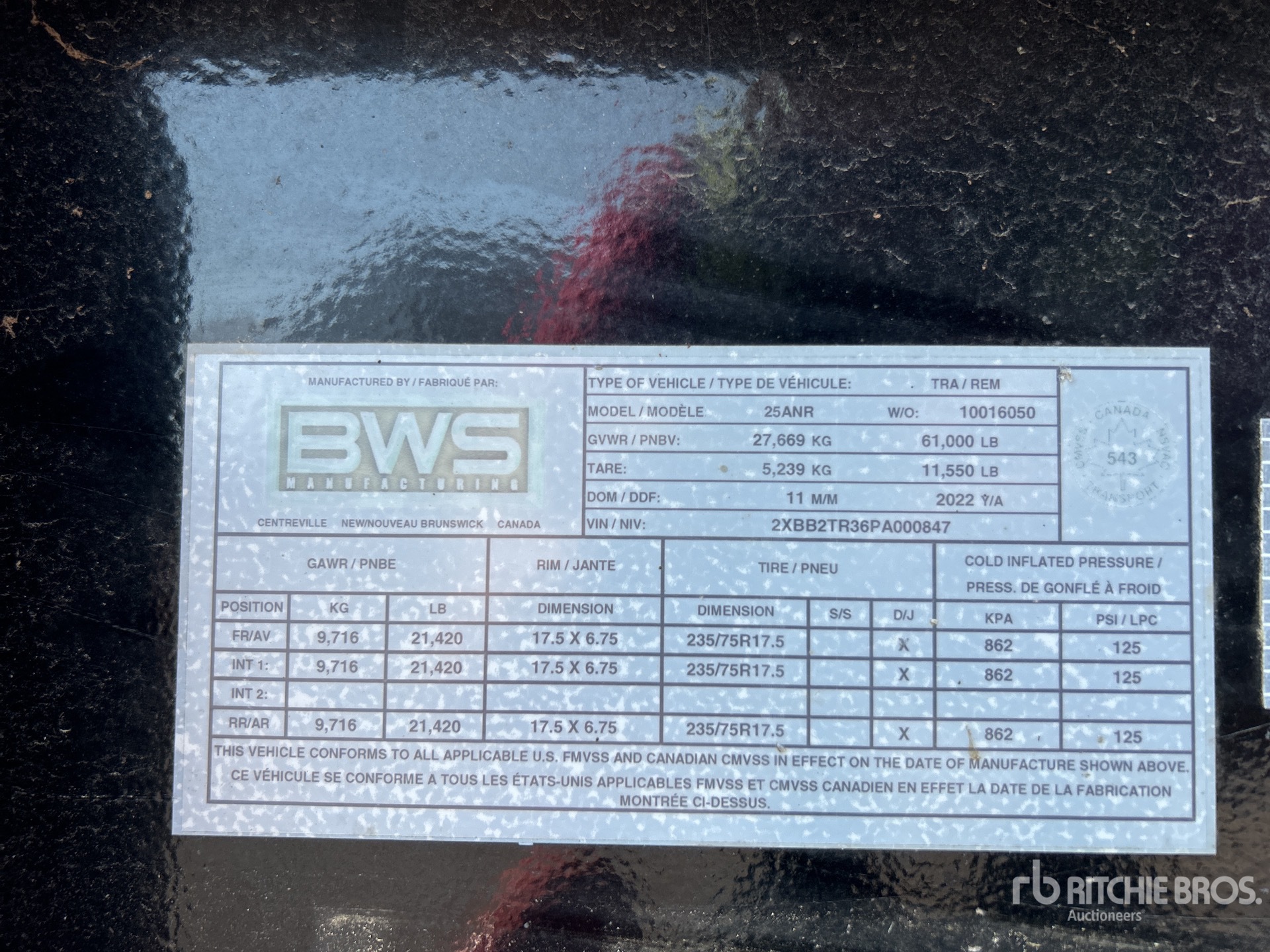 A qualified Ritchie Bros. employee collected detailed equipment information and performed functional tests on the key components of this asset. You, or a proxy, may also inspect any items on site prior to bidding on auction day.