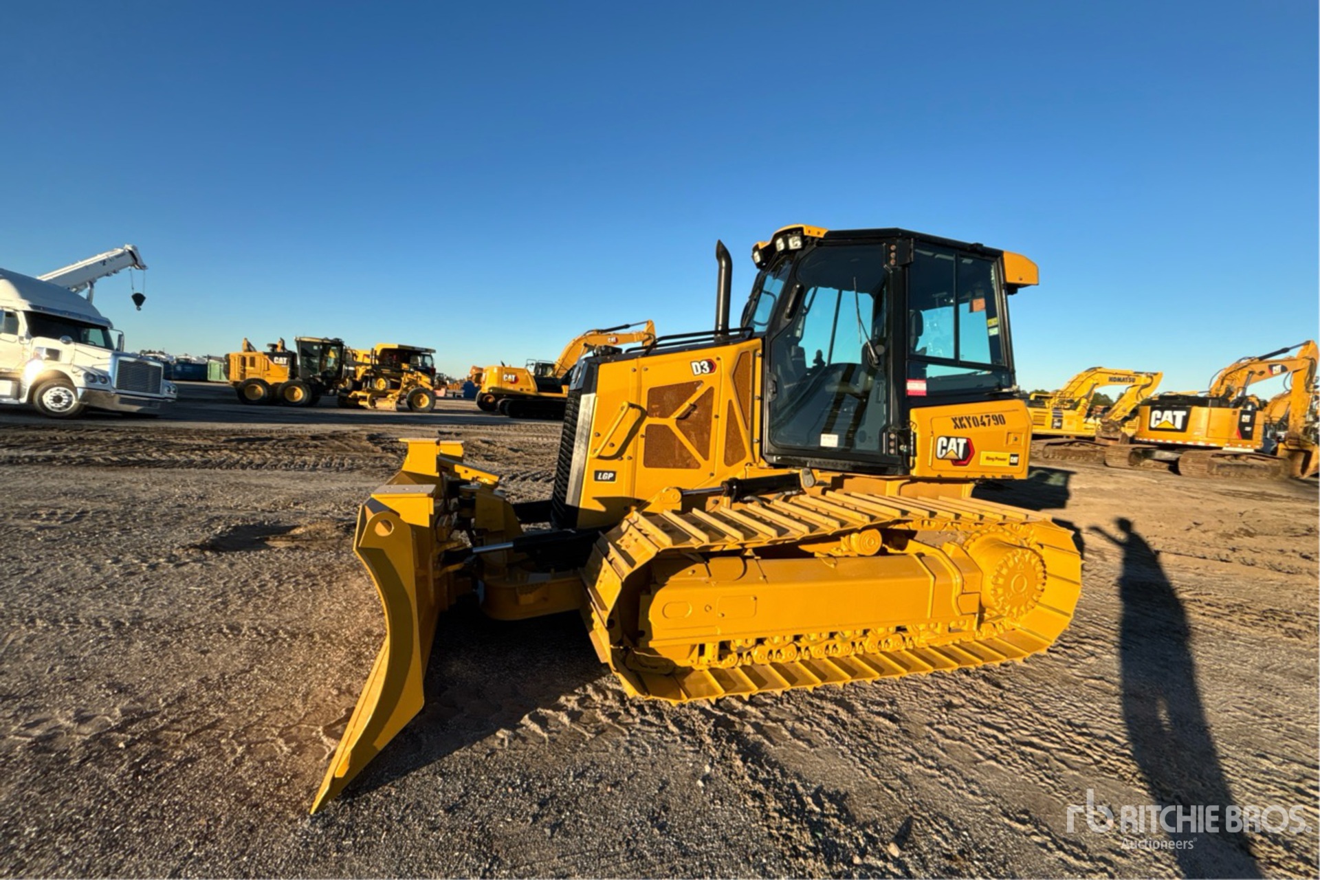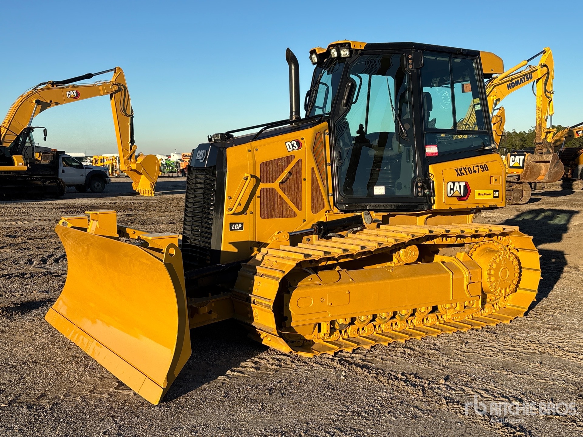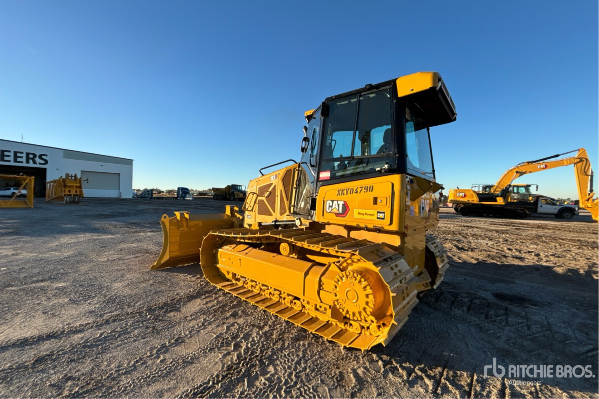 Enclosed Cab, Air Conditioner, Rear View Camera, Pre-Wired for Grade Control, Requires Diesel Exhaust Fluid, 122 in Wide PAT Blade, 26 in Single Grouser Track Shoes, SystemOne Undercarriage, Drawbar
