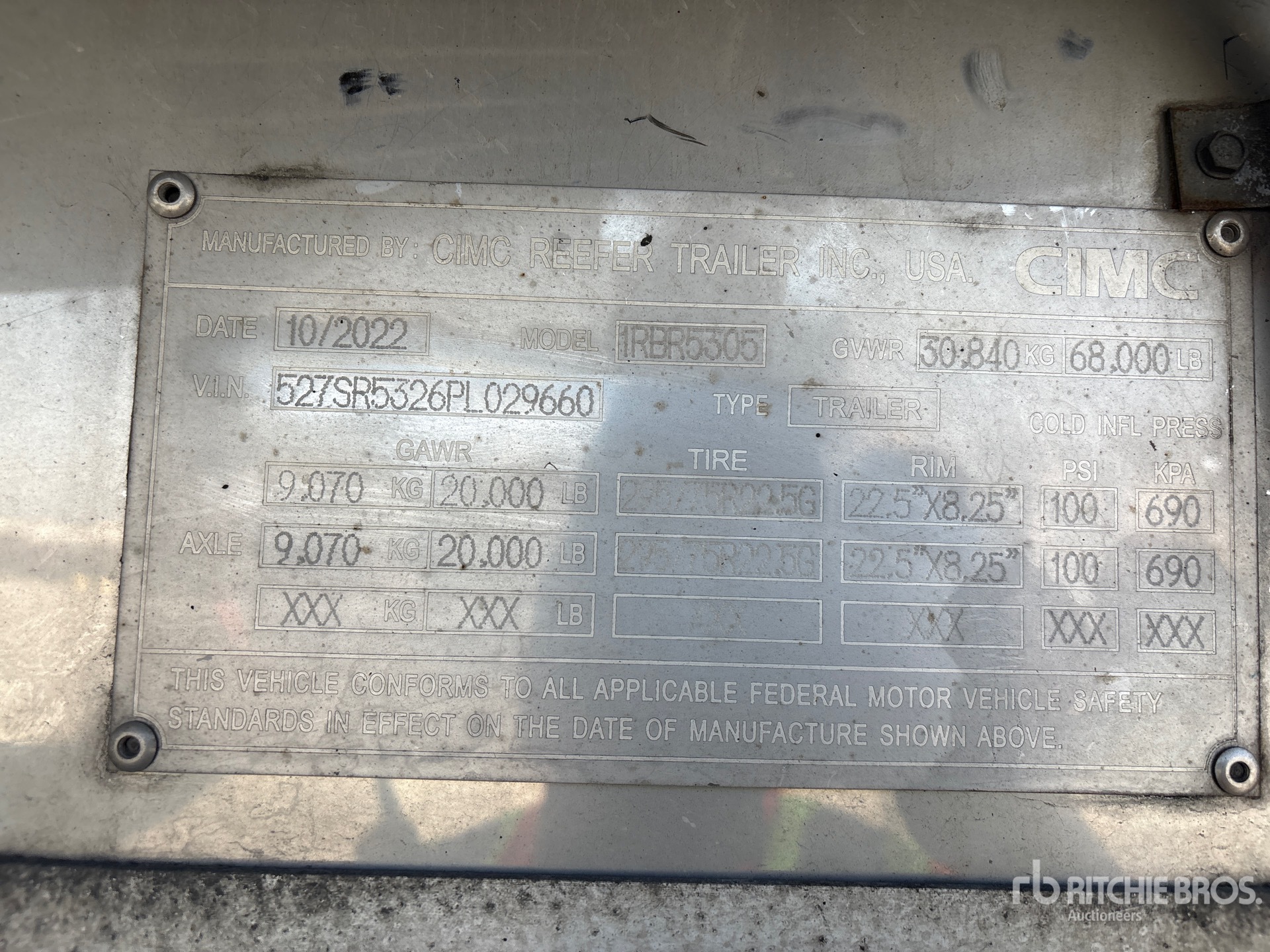 Thermo King TK488CR Refrigeration Unit, Aluminum/Steel Combination Frame, Air Ride Sliding Suspension, Side Skirts, Ducted Floor, Swing Door, 295/75R22.5 Tires 68000 lb GVWR