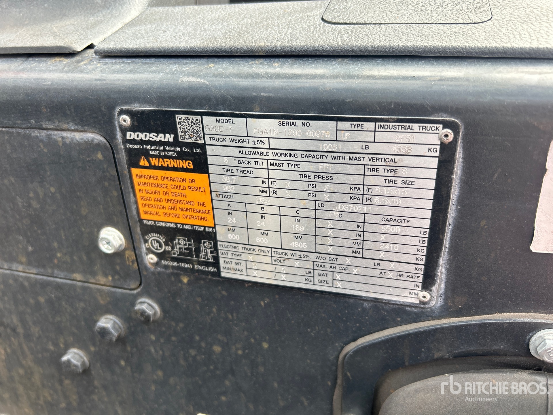 The detailed equipment information is limited in scope, and Ritchie Bros. Auctioneers has not inspected any aspects or components of the equipment other than those expressly set forth herein. Unless expressly stated, we make no representations or warranties, express or implied, concerning the equipment or its components, including without limitation any representations or warranties concerning functionality, conformity or compliance with any safety standard or requirement of any applicable authority or regulatory body, fitness for any particular purpose, or merchantability. You are strongly advised to perform your own detailed inspection of the equipment prior to bidding.