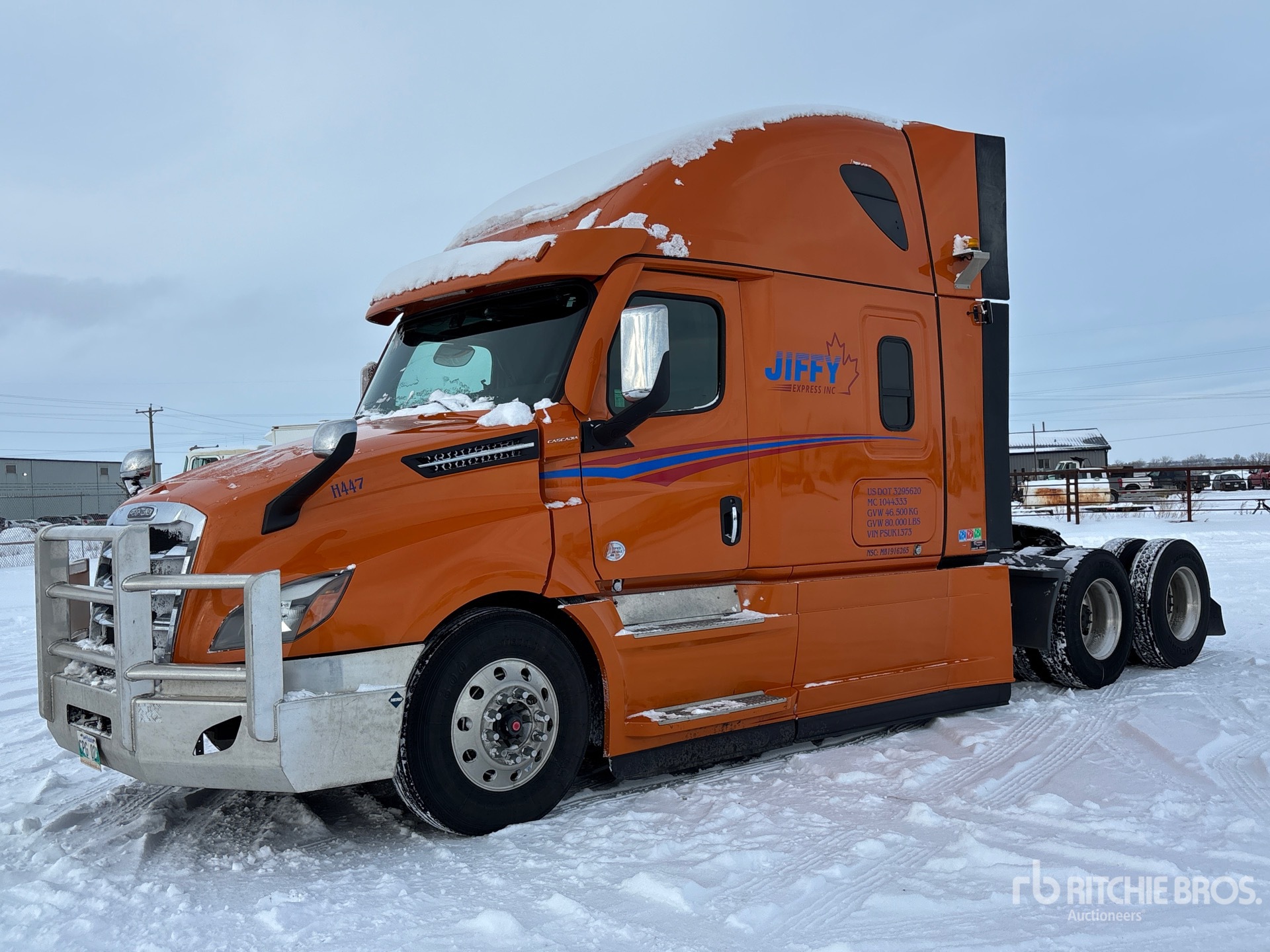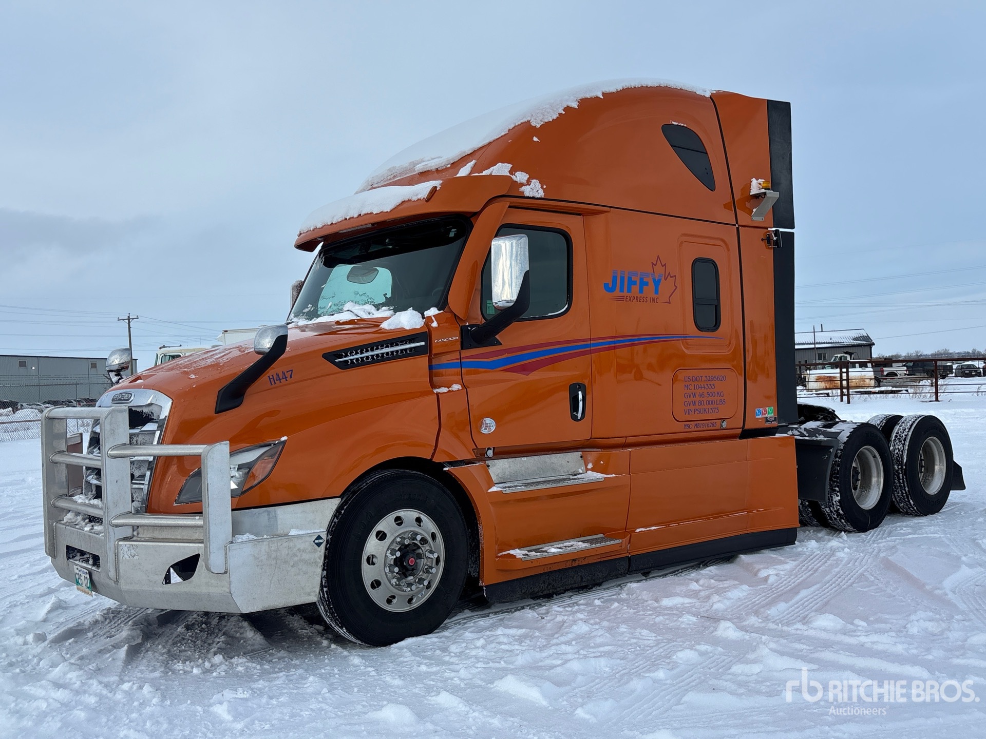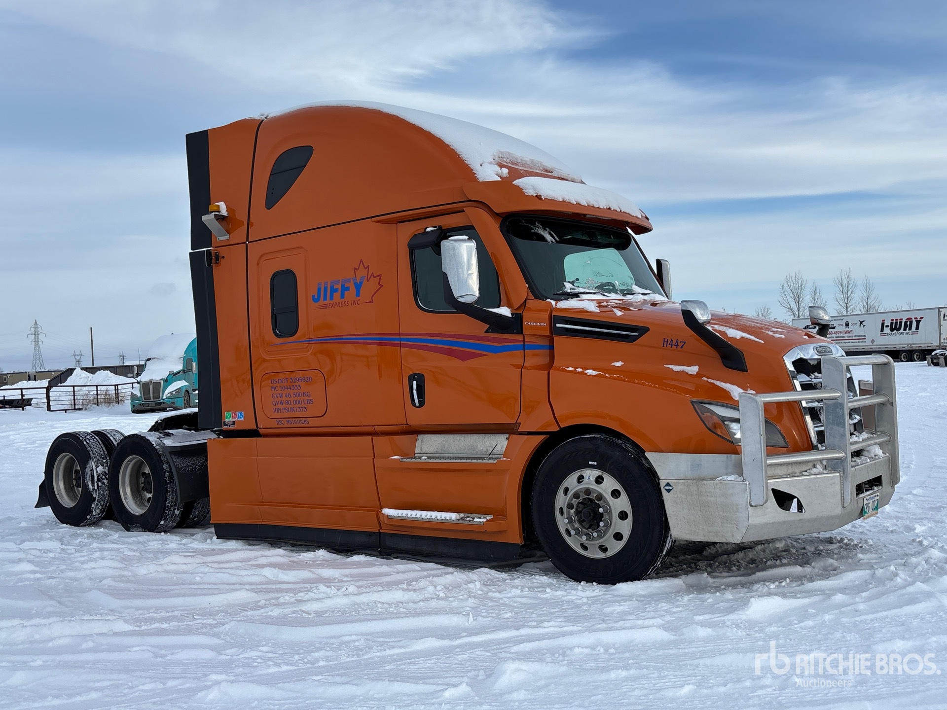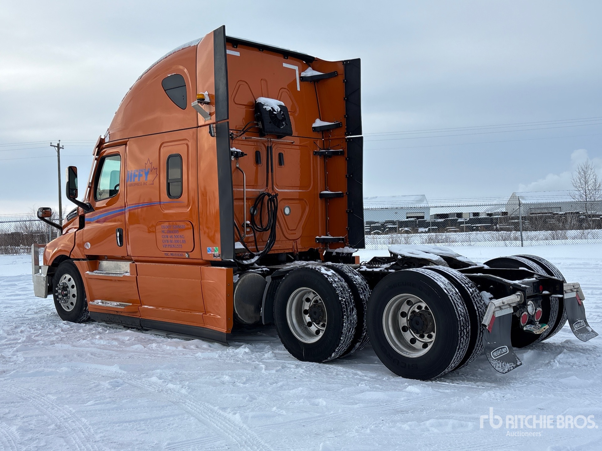 Detroit DD15 505 hp Engine, 2022 US EPA Label, 9936 Engine hrs, Detroit DT-1750-OH 12-Speed Automated Transmission, 13220 lb Front Axle, 40000 lb Rears, 53220 lb GVWR, Engine Brake, Double Differential Locks, 58 in High Rise Sleeper Cab, Bunk Beds, 233 in Wheelbase, Air Suspension, Aluminum Wheels, 11R22.5, Air Sliding 5th Wheel, Dual Fuel Tanks