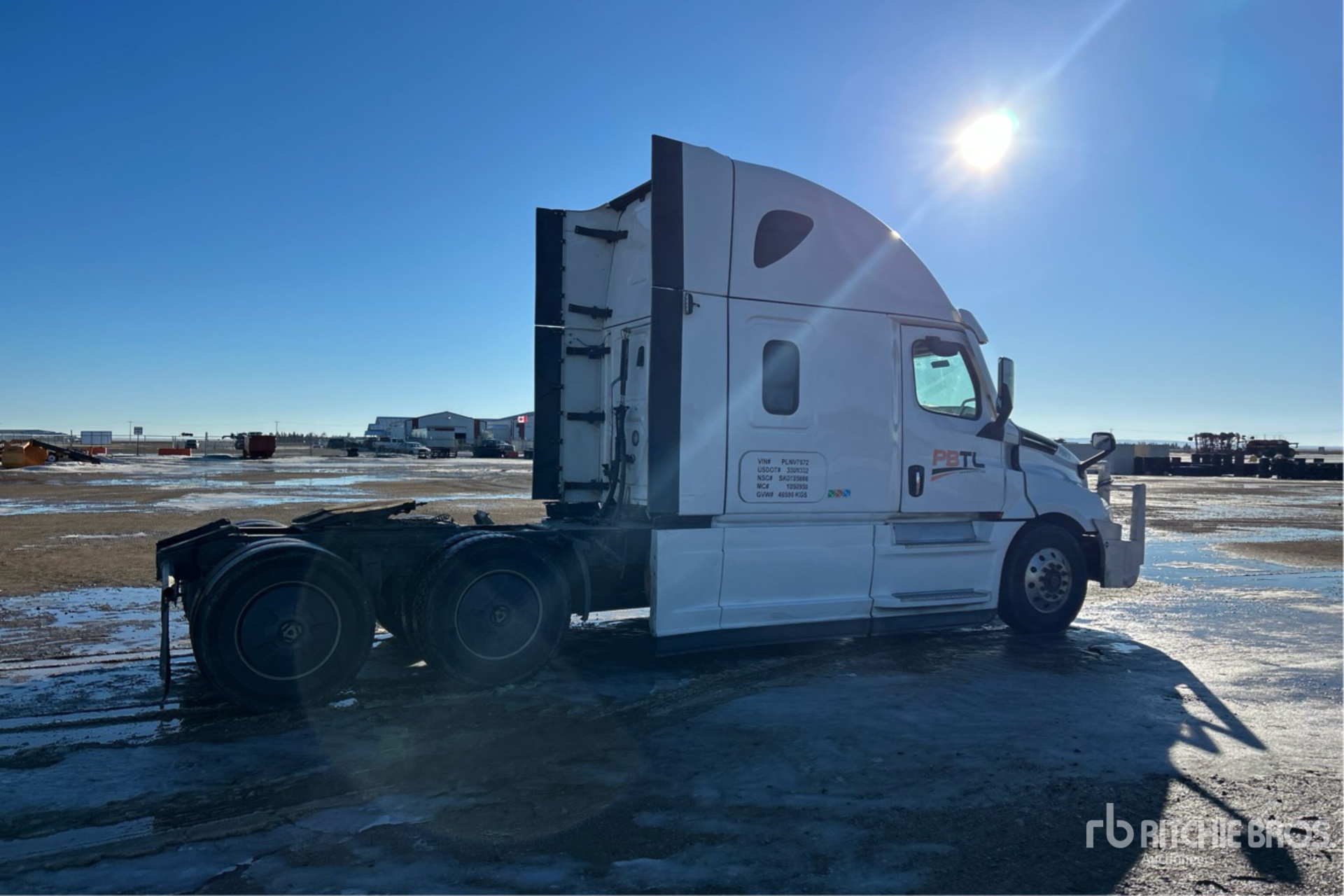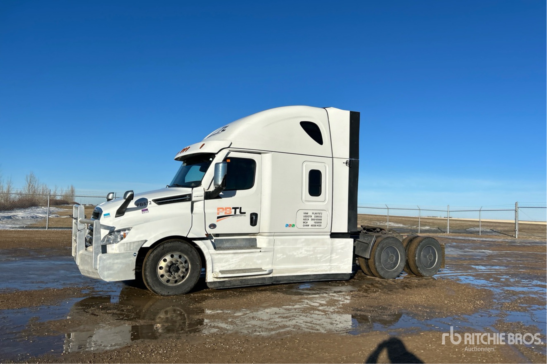 Located in Lane 2 Spot 26, Detroit DD15 505 hp Engine, 2022 US EPA Label, 15914 Engine hrs, Detroit DT12-1650-OH 12-Speed Automatic Transmission, 13220 lb Front Axle, 40000 lb Rears, 53220 lb GVWR, Retarder, Double Differential Locks, 70 in High Rise Sleeper Cab, Bunk Beds, Bunk Heater, 229 in Wheelbase, Air Suspension, Aluminum Wheels, 11R22.5, Air Sliding 5th Wheel, Dual Fuel Tanks