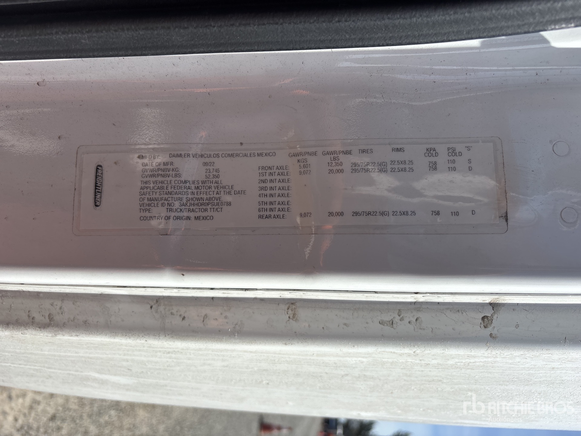 Detroit DD15 455 hp Engine, 2022 US EPA Label, Detroit DT12-1750-DHE 12-Speed Automated Transmission, 12350 lb Front Axle, 40000 lb Rears, 52350 lb GVWR, 70 in High Rise Sleeper Cab, 229 in Wheelbase, Air Suspension, 11R22.5 Front Tires, 11R22.5 Rear Tires, Air Sliding 5th Wheel
