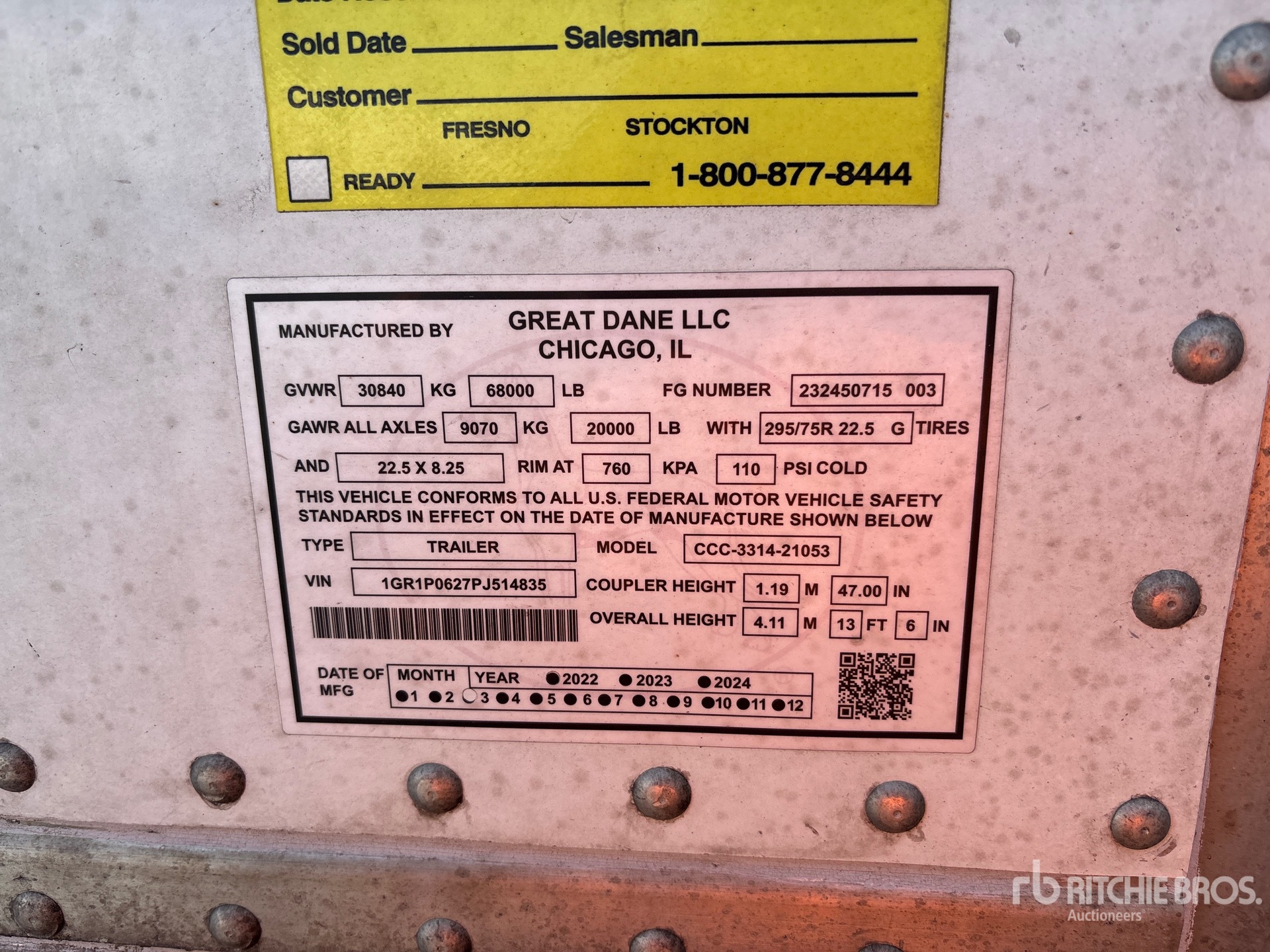 Air Ride Suspension, Side Skirts, Hardwood Floor, Swing Door, 295/75R22.5 Tires 68000 lb GVWR