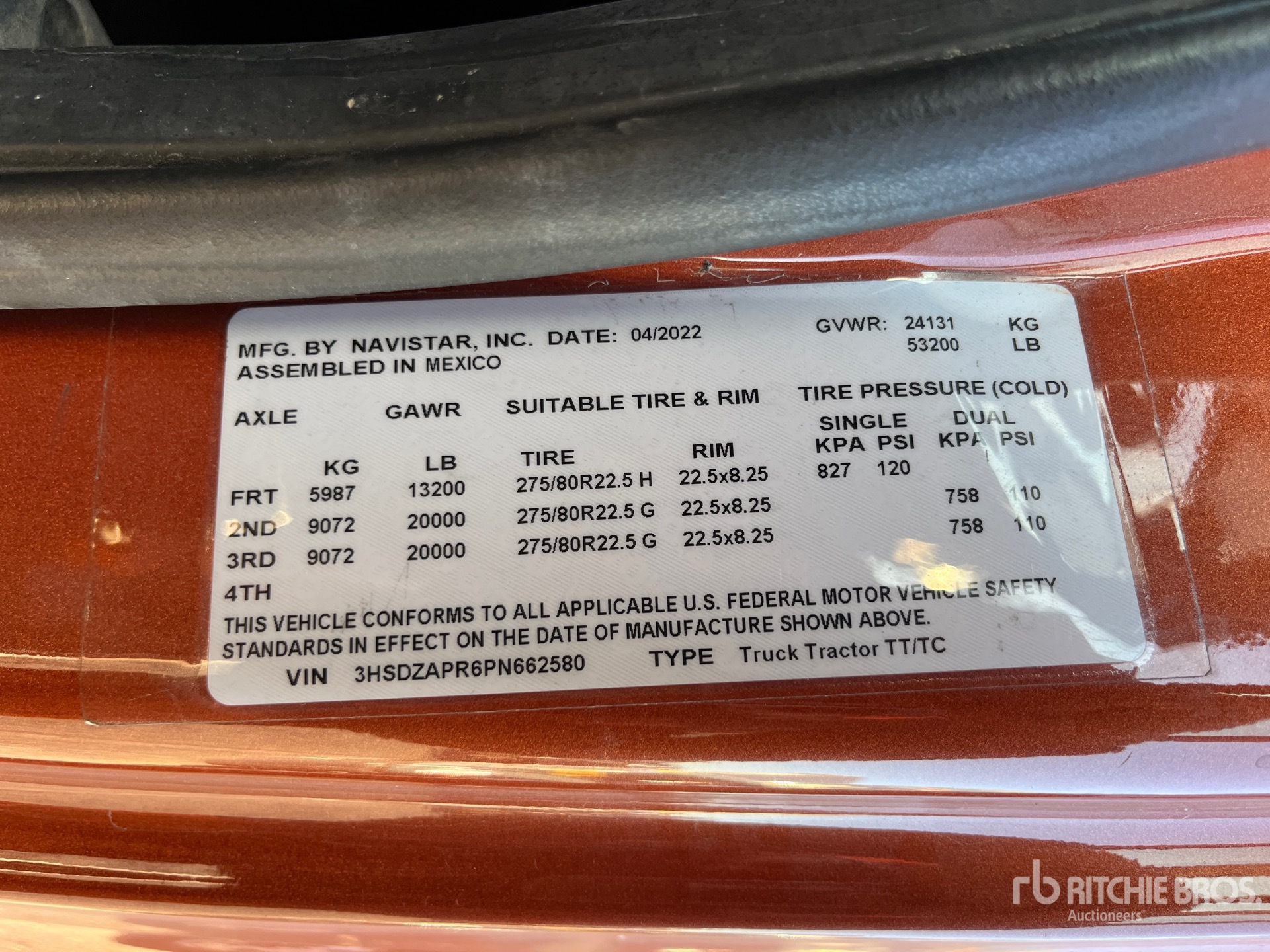 The detailed equipment information is limited in scope, and Ritchie Bros. Auctioneers has not inspected any aspects or components of the equipment other than those expressly set forth herein. Unless expressly stated, we make no representations or warranties, express or implied, concerning the equipment or its components, including without limitation any representations or warranties concerning functionality, conformity or compliance with any safety standard or requirement of any applicable authority or regulatory body, fitness for any particular purpose, or merchantability. You are strongly advised to perform your own detailed inspection of the equipment prior to bidding.