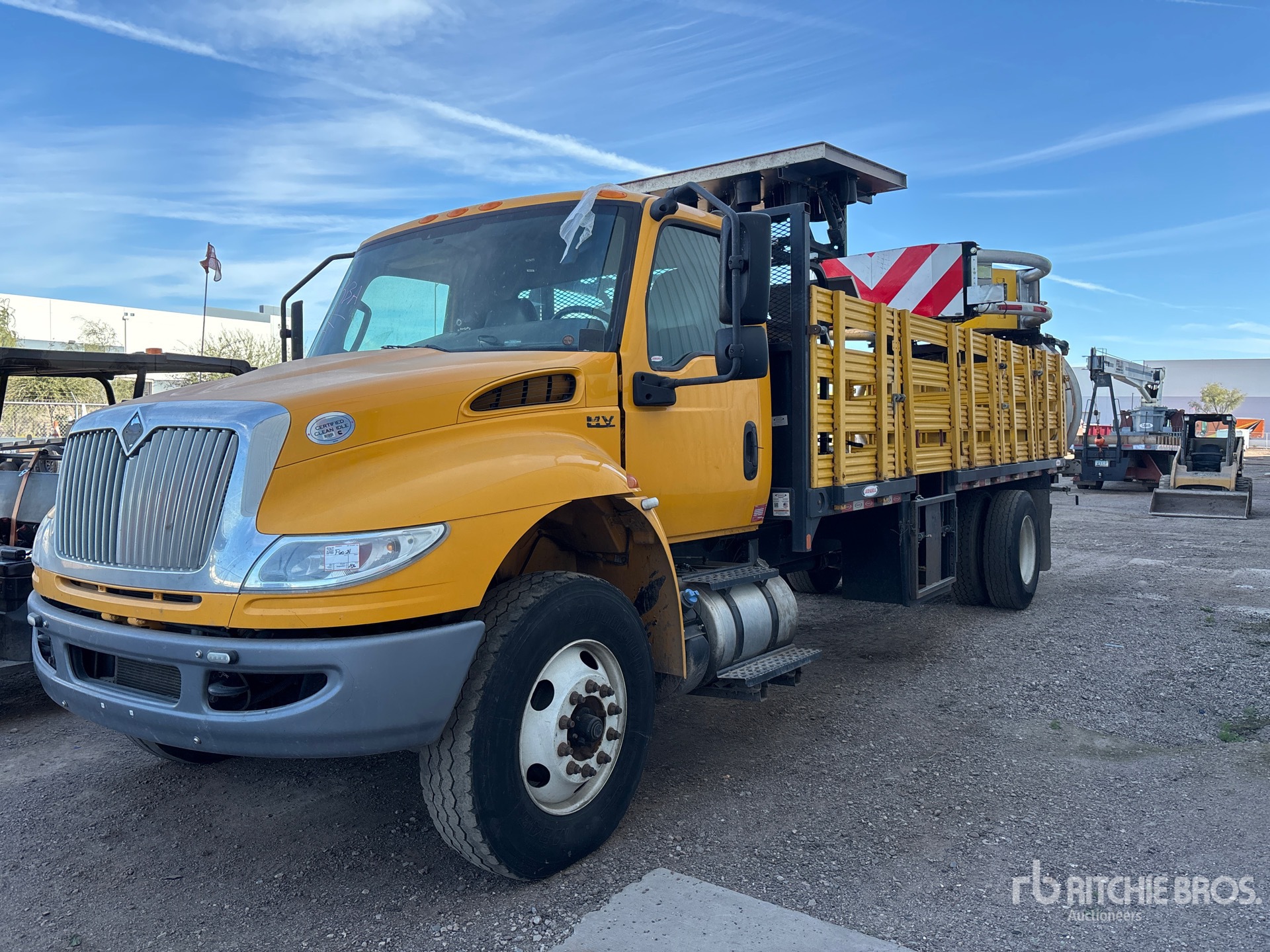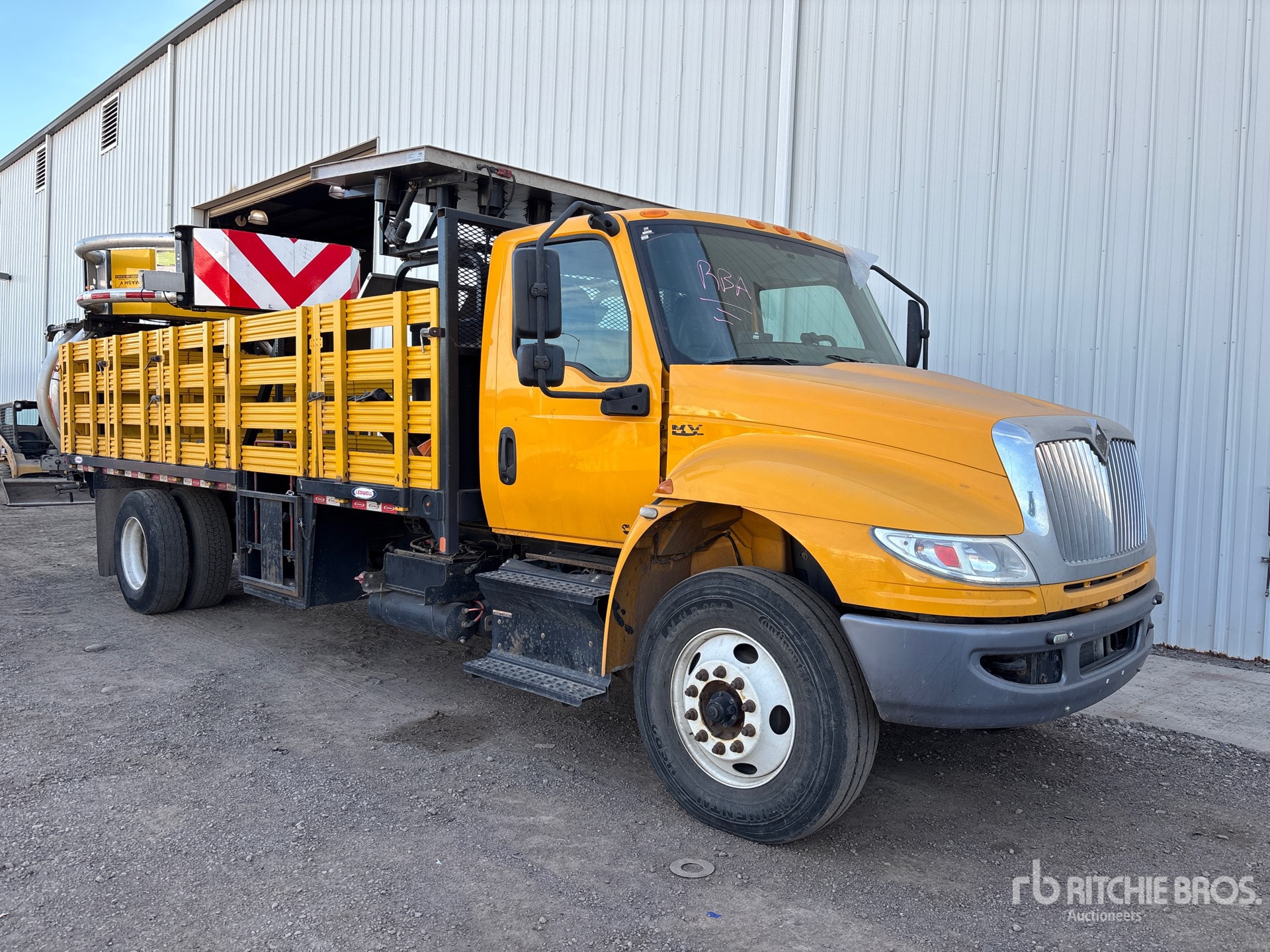 Cummins B6.7 220 6 Cylinder 6.7 L Diesel Engine, 2021 US EPA Label, Requires Diesel Exhaust Fluid, 4180 Engine hrs, Automated Transmission, 13000 lb Front Axle, 20000 lb Rears, 33000 lb GVWR, Aluminum Wheels, 11R22.5, Air Ride Suspension, 245 in Wheelbase, Flatbed, In-Cab Attenuator Controller, Arrow Board, In-Cab Arrow Board Controller