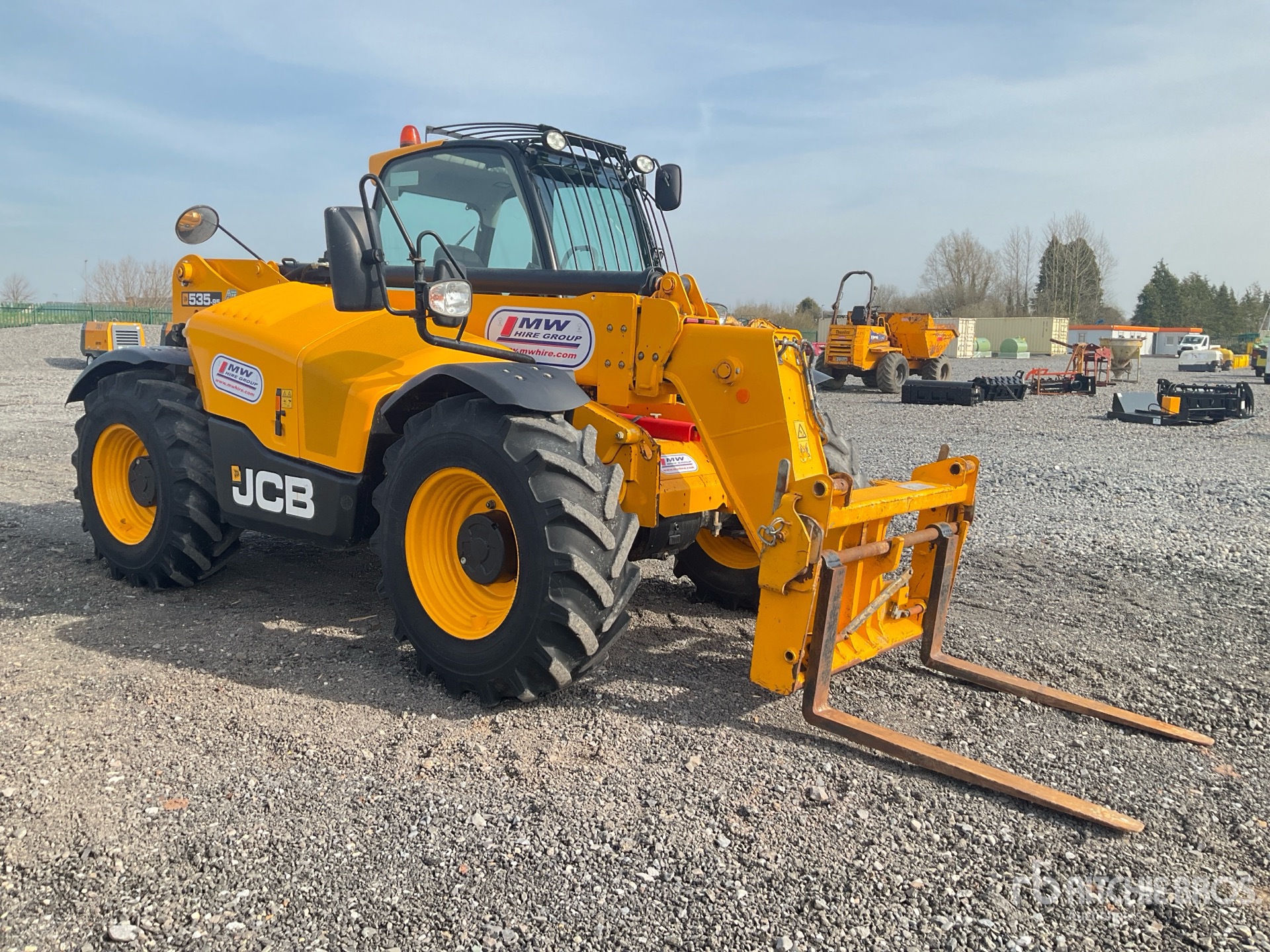 Enclosed Cab, Air Conditioner, Rear View Camera, Load Moment Indicator, 9 m Max Lift Height, 3500 kg Max Lift Capacity, 1050 mm Forks, Manual Coupler, Auxiliary Hydraulic Plumbing, 15.5/80 Tires