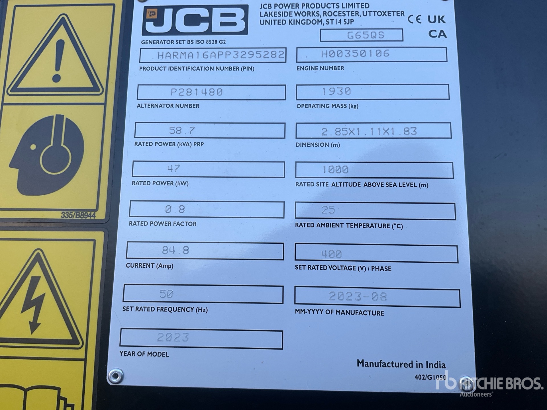 The detailed equipment information is limited in scope, and Ritchie Bros. Auctioneers has not inspected any aspects or components of the equipment other than those expressly set forth herein. Unless expressly stated, we make no representations or warranties, express or implied, concerning the equipment or its components, including without limitation any representations or warranties concerning functionality, conformity or compliance with any safety standard or requirement of any applicable authority or regulatory body, fitness for any particular purpose, or merchantability. You are strongly advised to perform your own detailed inspection of the equipment prior to bidding.