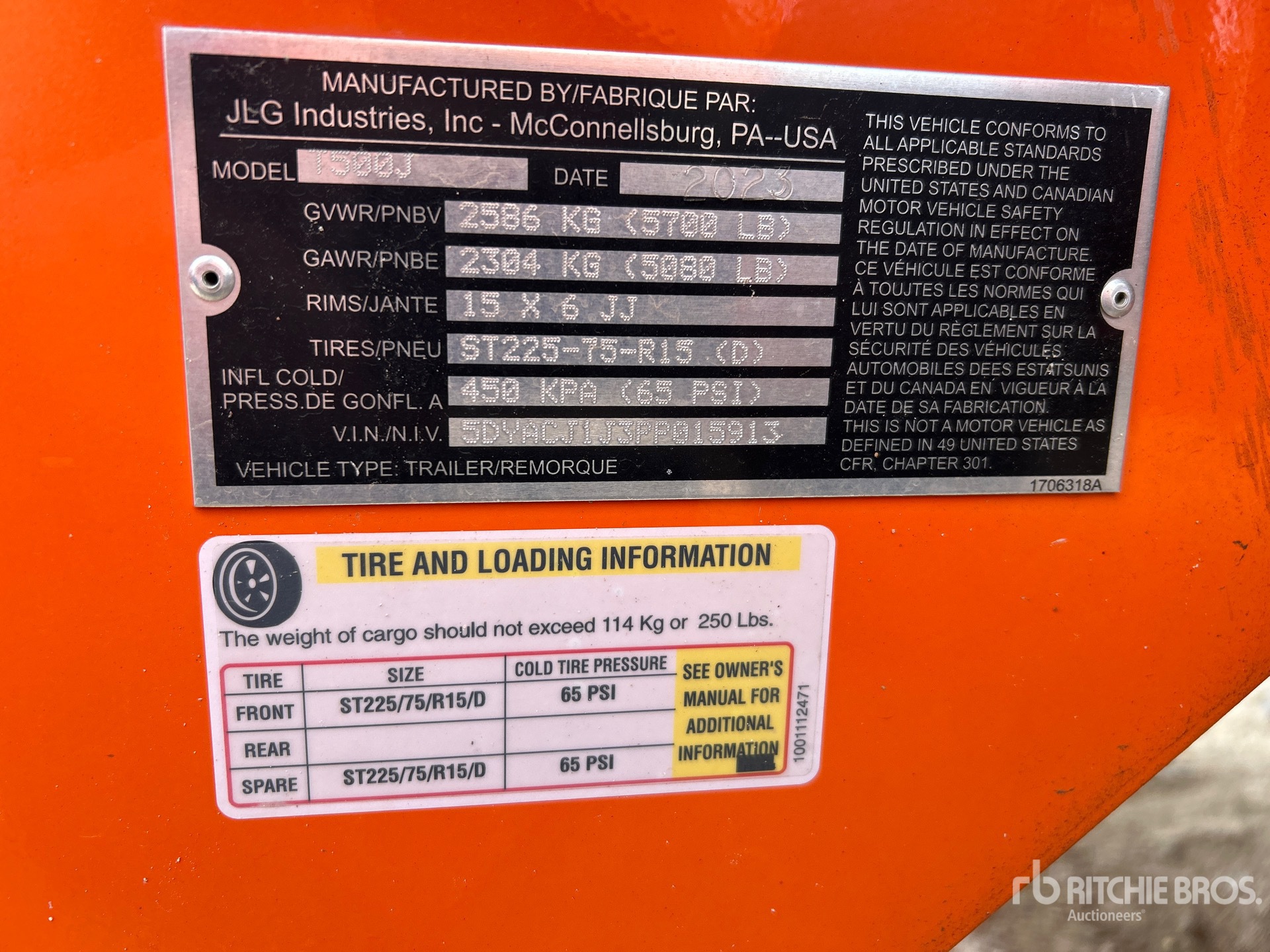 The detailed equipment information is limited in scope, and Ritchie Bros. Auctioneers has not inspected any aspects or components of the equipment other than those expressly set forth herein. Unless expressly stated, we make no representations or warranties, express or implied, concerning the equipment or its components, including without limitation any representations or warranties concerning functionality, conformity or compliance with any safety standard or requirement of any applicable authority or regulatory body, fitness for any particular purpose, or merchantability. You are strongly advised to perform your own detailed inspection of the equipment prior to bidding.