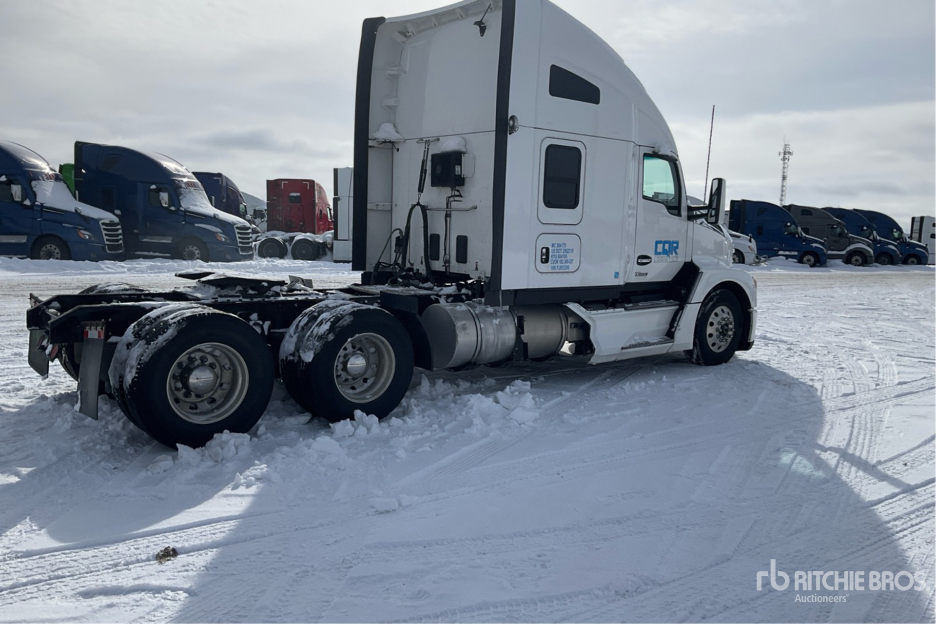 Located in Lane 7 Spot 43, Cummins X15 500 hp Engine, 2022 US EPA Label, 8796 Engine hrs, Automated Transmission, 12350 lb Front Axle, 40000 lb Rears, 52350 lb GVWR, Engine Brake, Differential Lock, 72 in High Rise Sleeper Cab, Bunk Beds, 235 in Wheelbase, Air Suspension, Aluminum Wheels, 11R22.5, Air Sliding 5th Wheel, Dual Fuel Tanks
