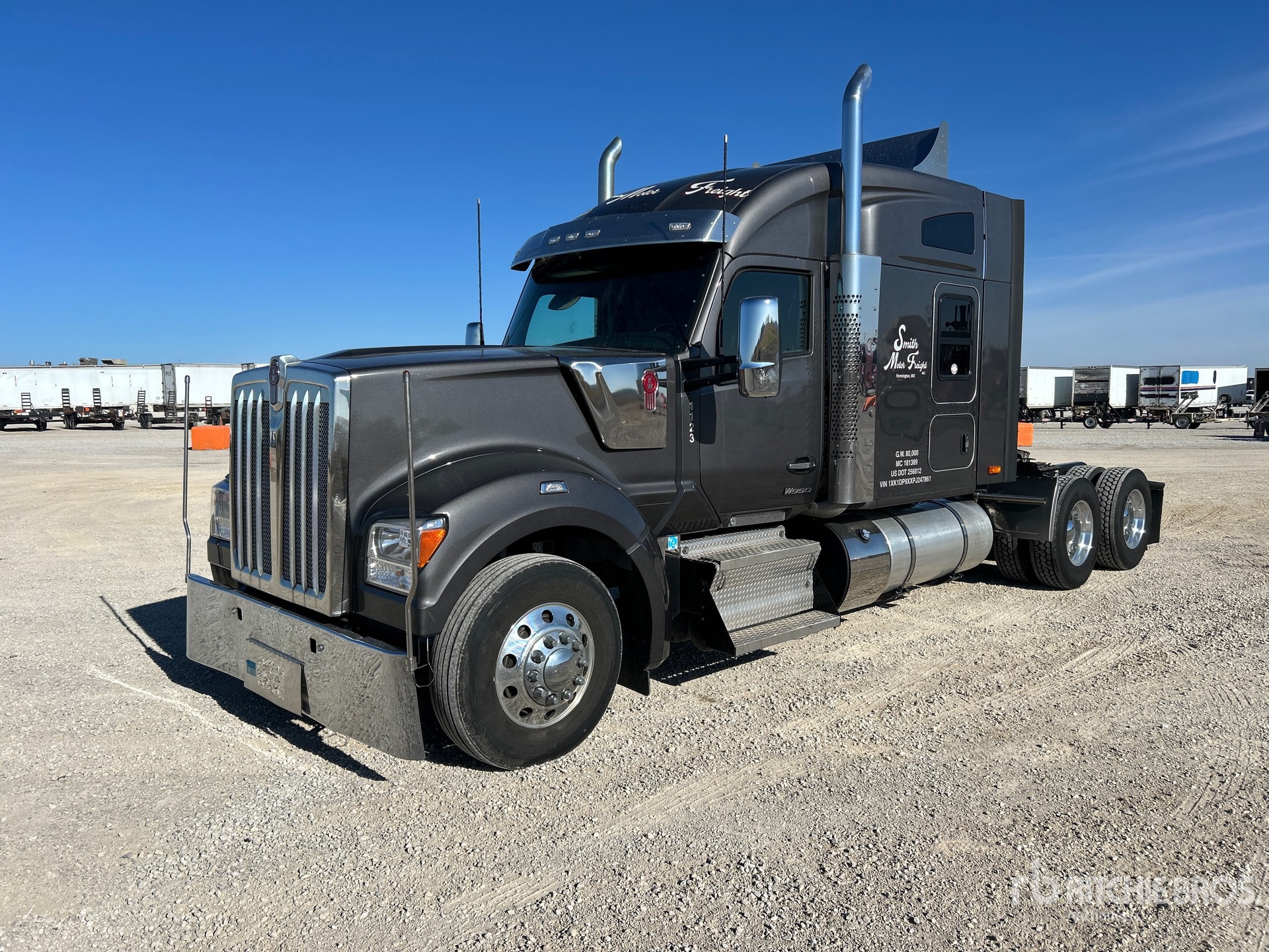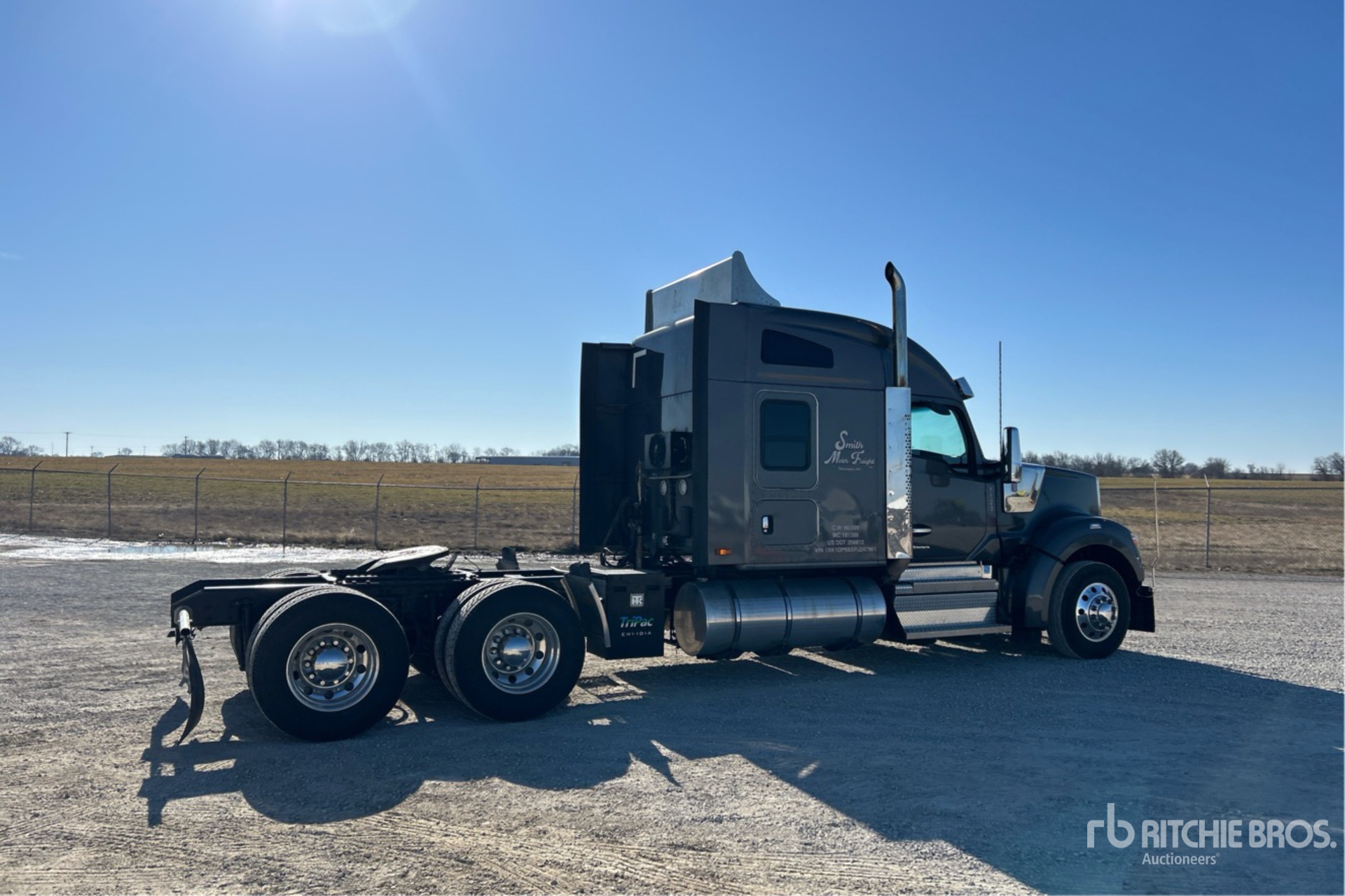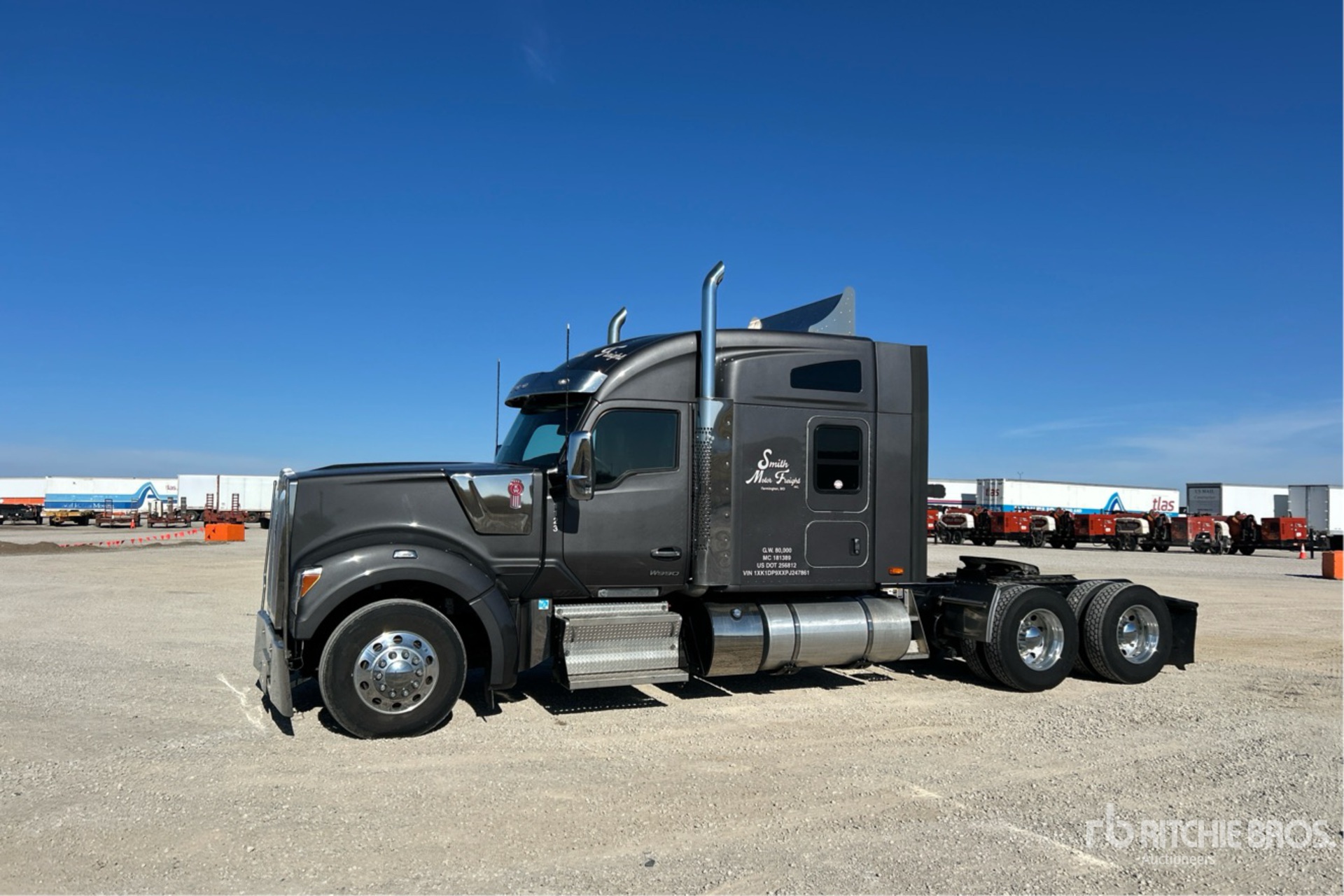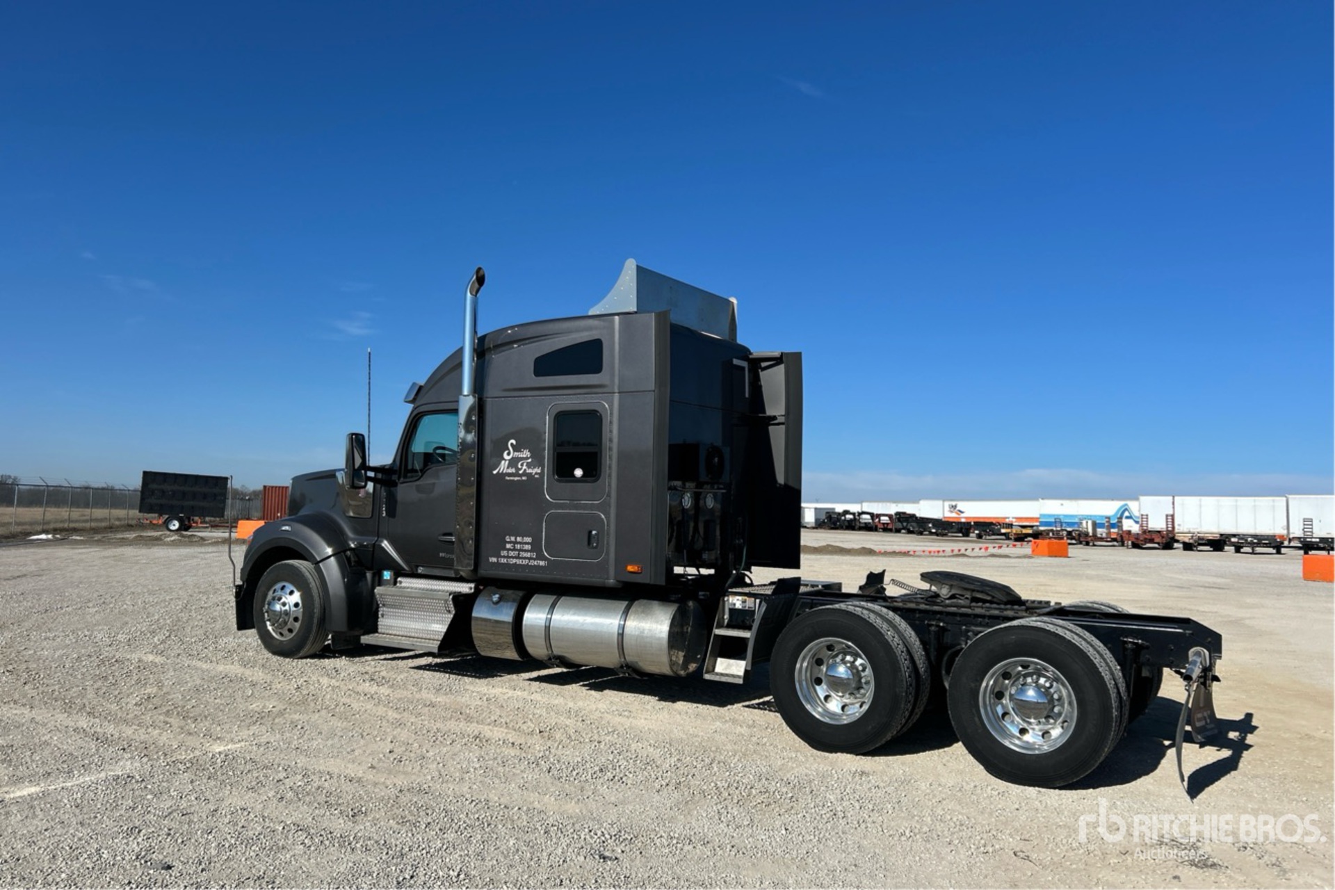 Paccar MX-13 510 hp Engine, 2022 US EPA Label, 9757 Engine hrs, Paccar PO-16F112 12-Speed Automated, 13200 lb Front Axle, 38000 lb Rears, 51200 lb GVWR, Engine Brake, 72 in Mid Roof Sleeper Cab, Auxiliary Power Unit, Thermo King Sleeper Air Conditioner, 265 in Wheelbase, Air Suspension, Aluminum Wheels, 295/75R22.5, Air Sliding 5th Wheel, Dual Fuel Tanks