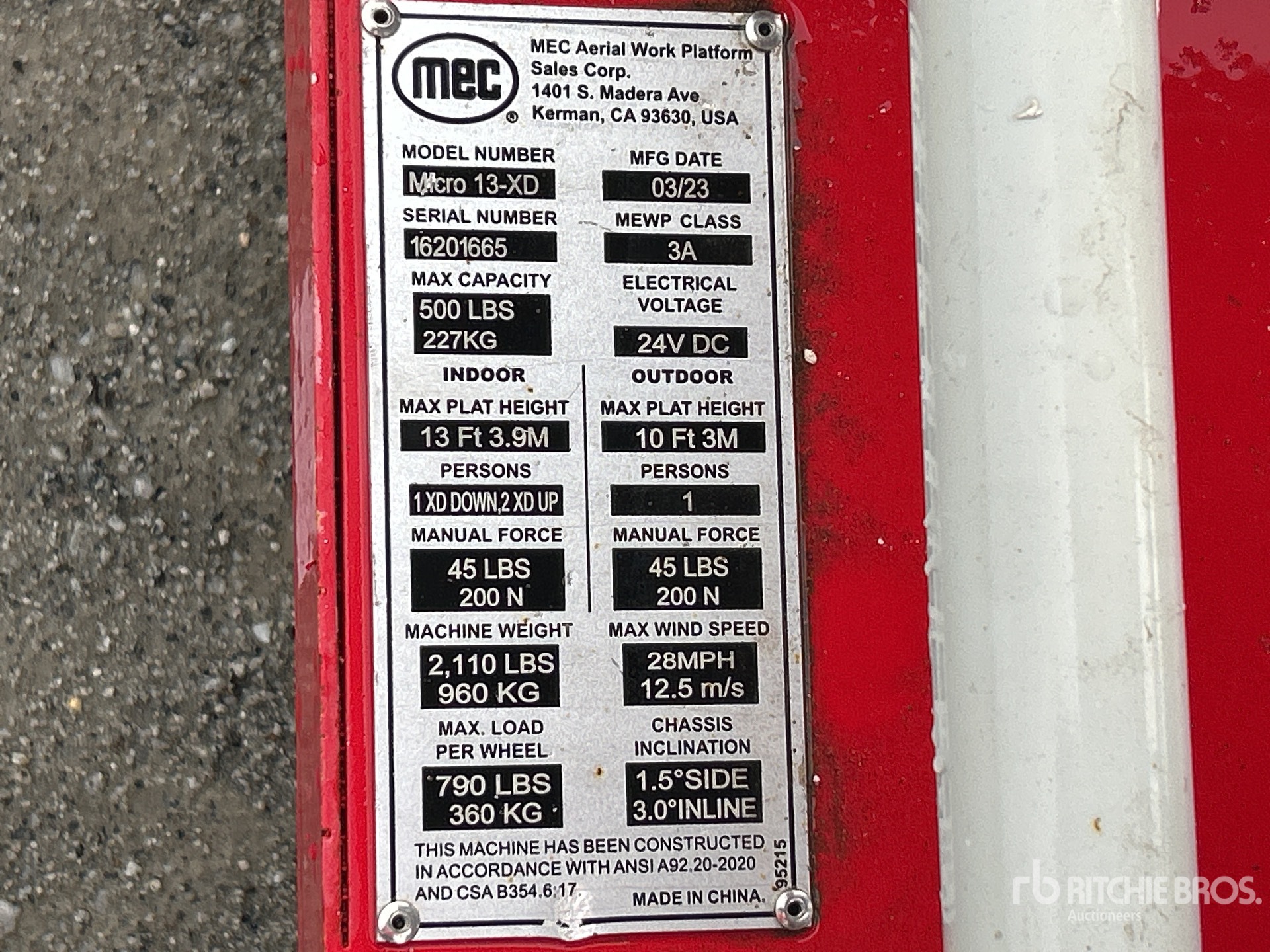 A qualified Ritchie Bros. employee collected detailed equipment information and performed functional tests on the key components of this asset. You, or a proxy, may also inspect any items on site prior to bidding on auction day.