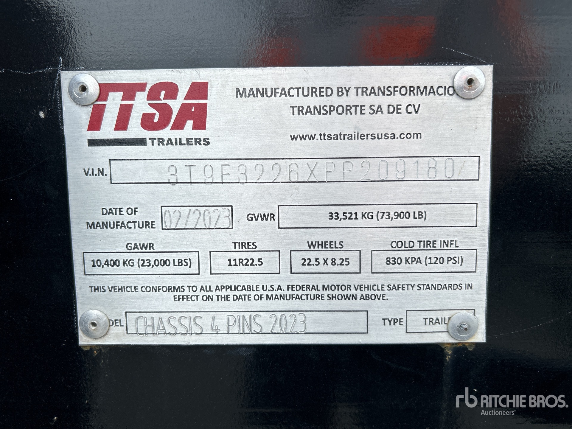 73900 lb GVWR, Spring Suspension, 40 ft - Container Pins, 11R22.5 Tires
