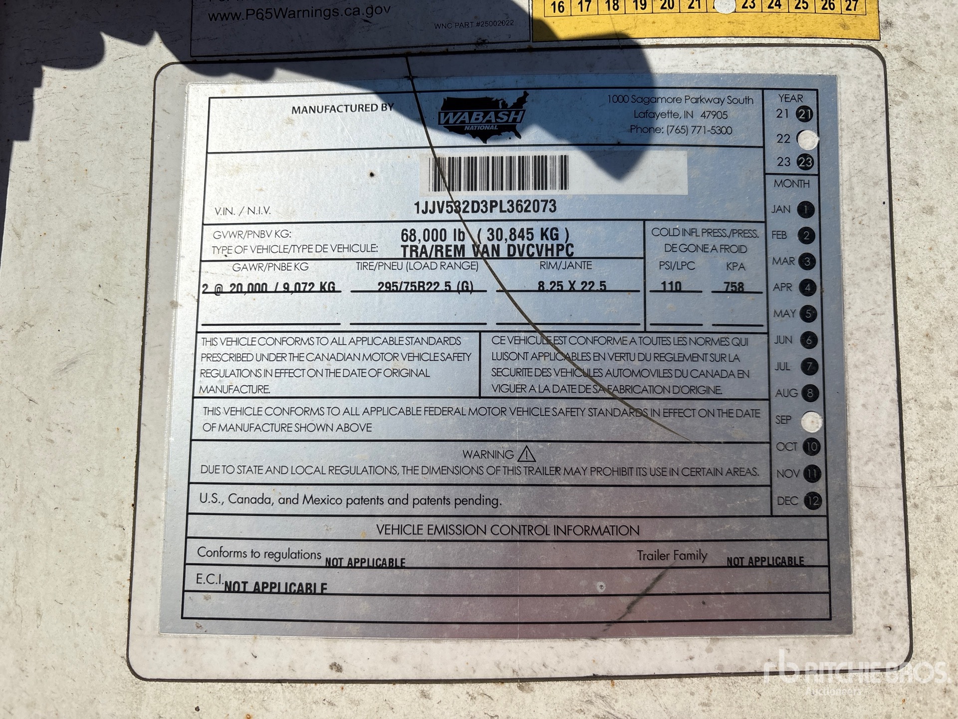 Air Ride Sliding Suspension, Hardwood Floor, Swing Door, 295/75R22.5 Tires 68000 lb GVWR