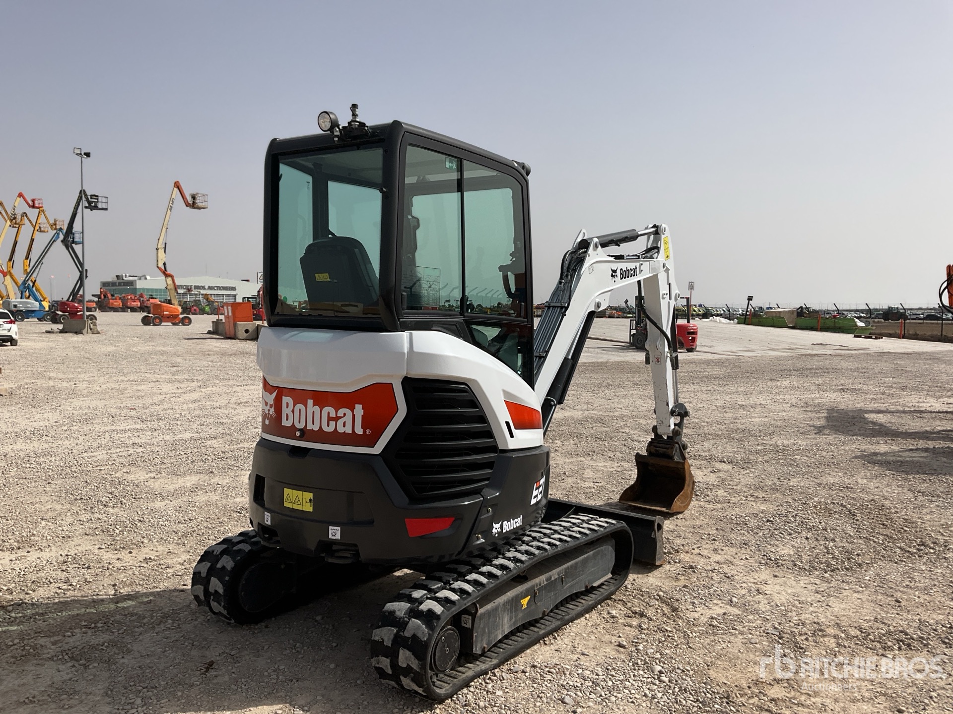 Enclosed Cab, Air Conditioner, Swing Boom, 1250 mm Stick, Auxiliary Hydraulic Plumbing, Backfill Blade, 300 mm Rubber Tracks, Hydraulic Quick Coupler, 430 mm Cleanup Bucket
