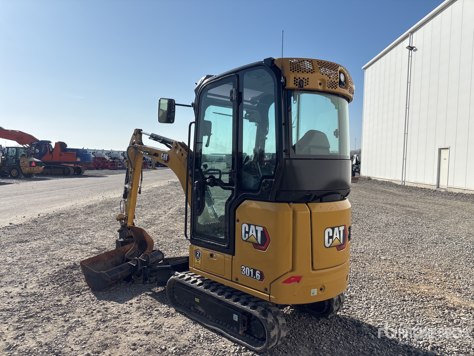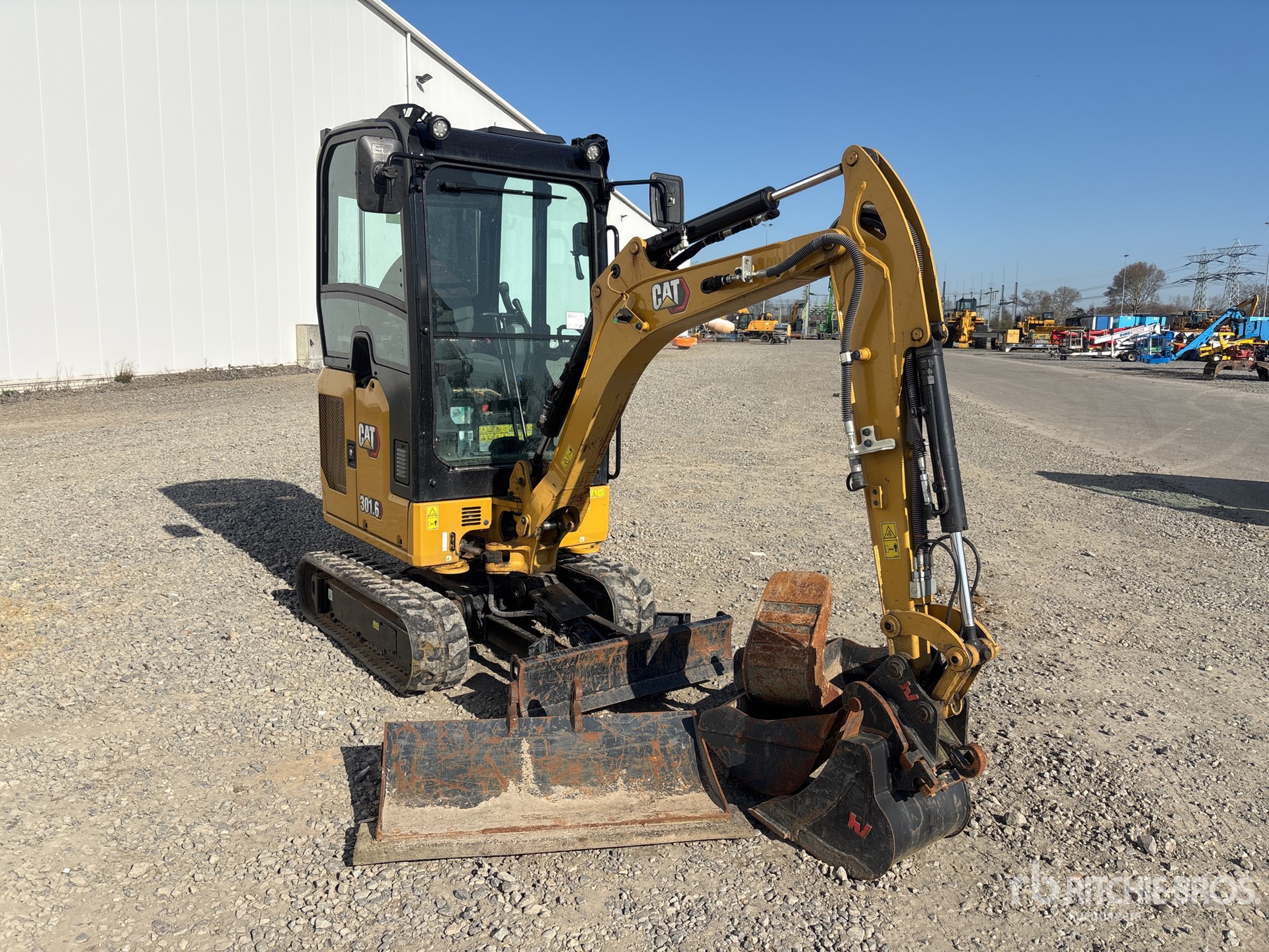 Enclosed Cab, Swing Boom, 1600 mm Stick, Boom Check Valves, Backfill Blade, 200 mm Rubber Tracks, Expandable Width Tracks, Hydraulic Quick Coupler, 500 mm Cleanup Bucket, Additional 1100 mm Cleanup Bucket