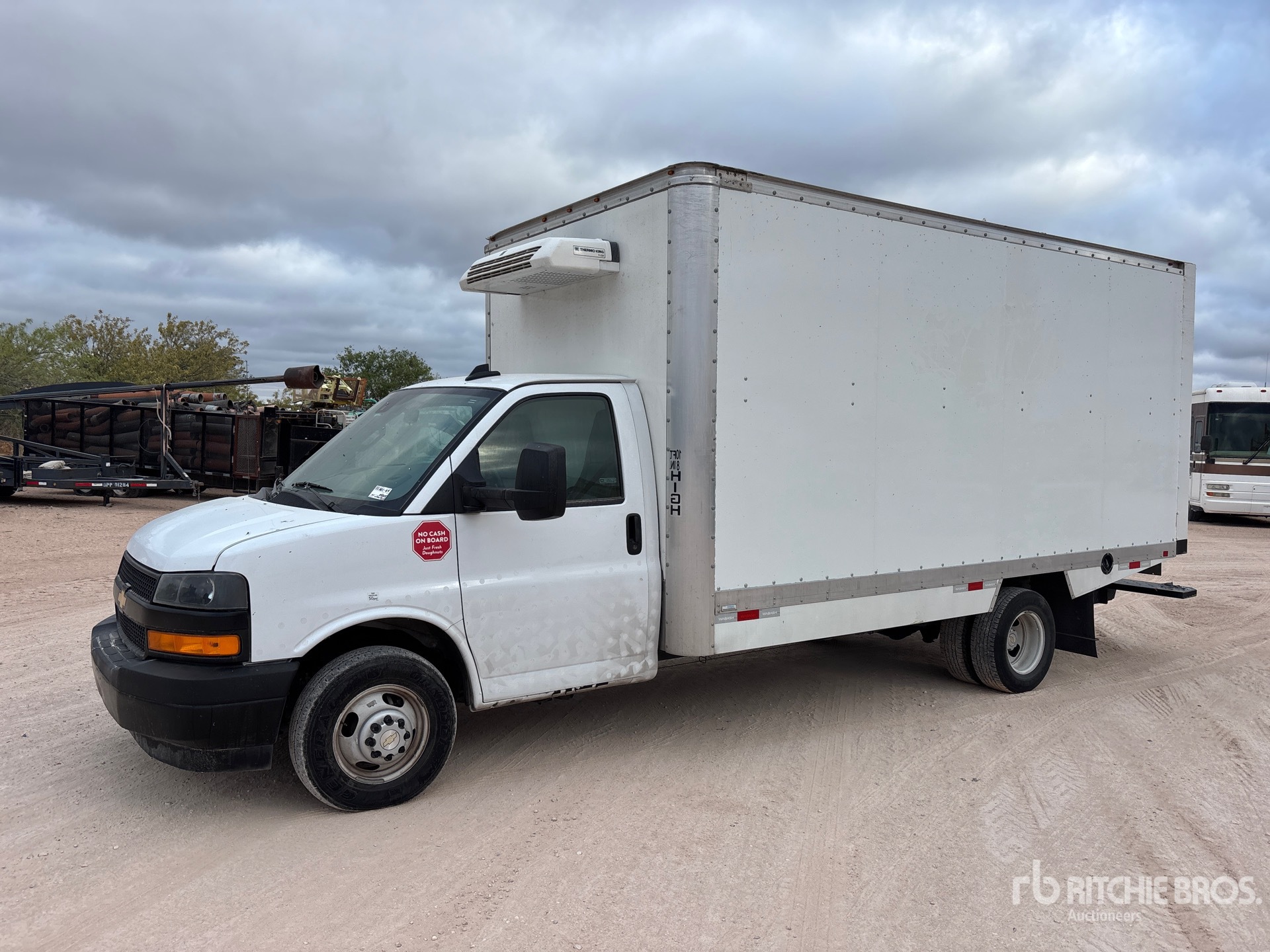 V8 6.6 L Gasoline Engine, 2024 US EPA Label, Automatic Transmission, 4300 lb Front Axle, 8600 lb Rears, 12300 lb GVWR, 225/75R16, Spring Suspension, 177 in Wheelbase, Thermo King V-220-10 Reefer Unit, Wabash 16 ft x 96 in Wide x 85 in High Body, Walk-Up Ramp