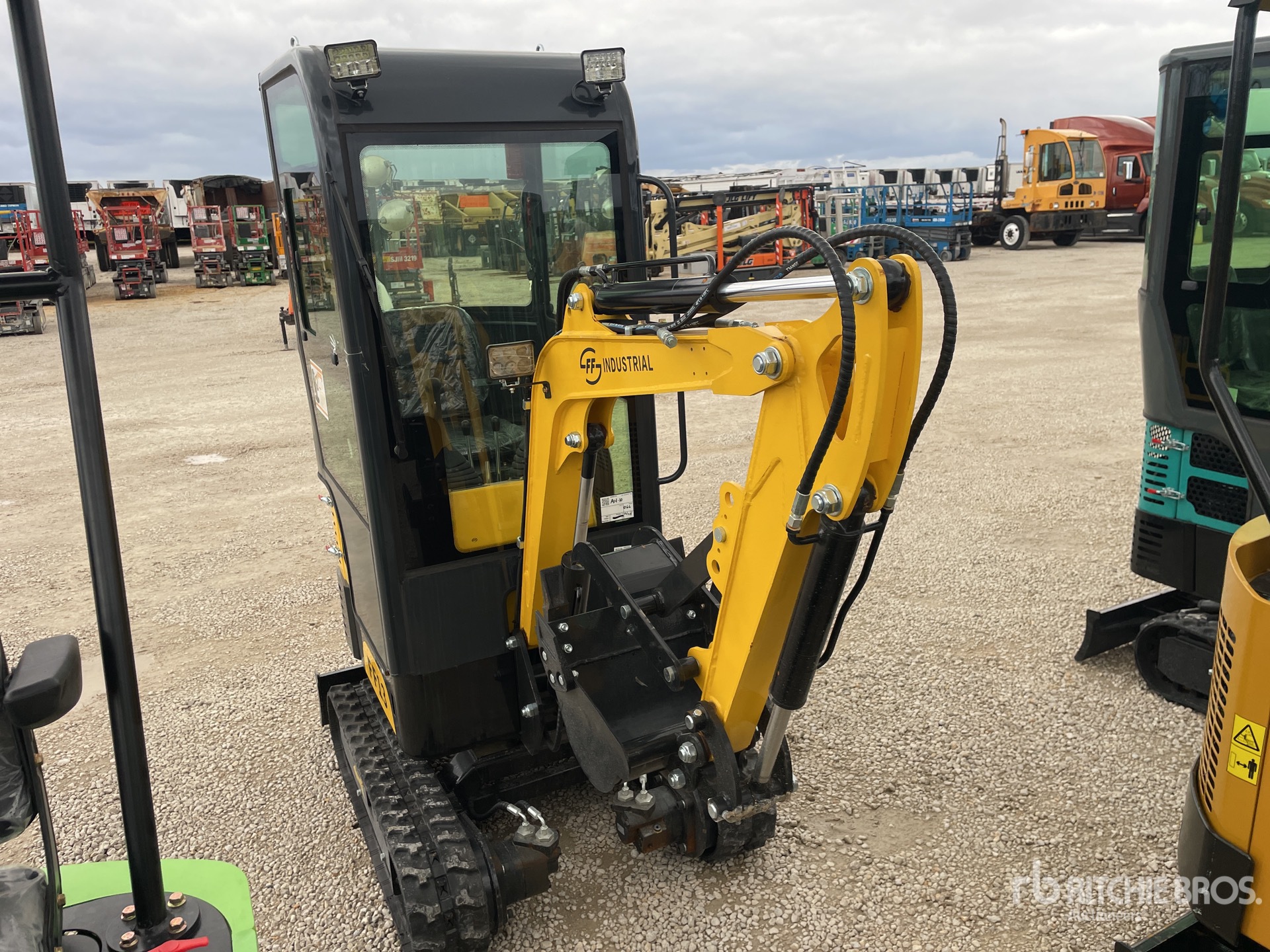 Enclosed Cab, 2 ft 7 in Stick, Auxiliary Hydraulic Plumbing, Backfill Blade, 7 in Rubber Tracks, 16 in Digging Bucket, Manual Thumb, w/Enclosed Cab & Bucket