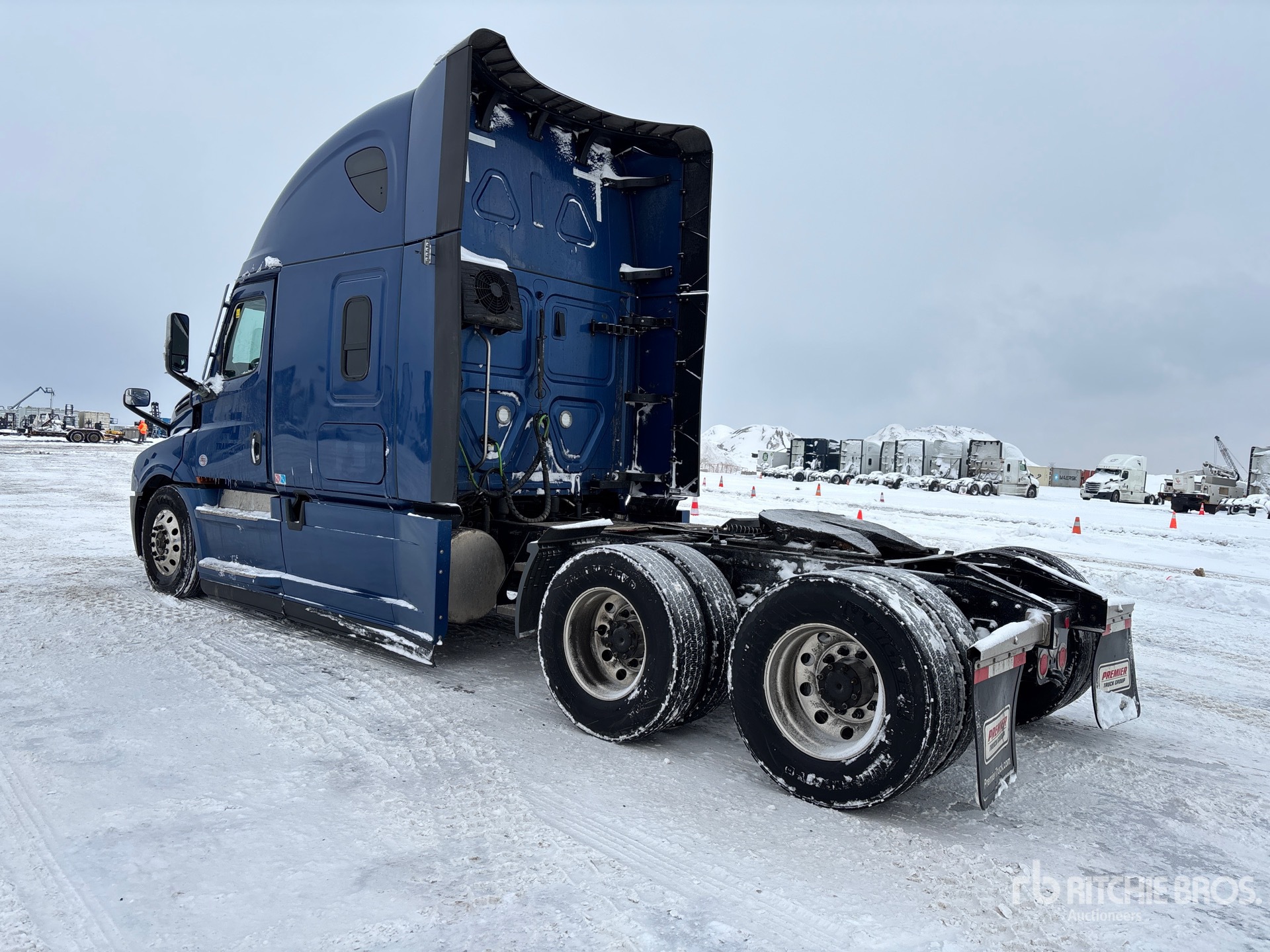 Detroit DD15 505 hp Engine, 2023 US EPA Label, 6167 Engine hrs, Detroit DT12-1750-DHE 12-Speed Automated Transmission, 13220 lb Front Axle, 40000 lb Rears, 53220 lb GVWR, Double Differential Locks, 70 in High Rise Sleeper Cab, Bunk Beds, 237 in Wheelbase, Air Suspension, Aluminum Wheels, 11R22.5, Air Sliding 5th Wheel, Dual Fuel Tanks