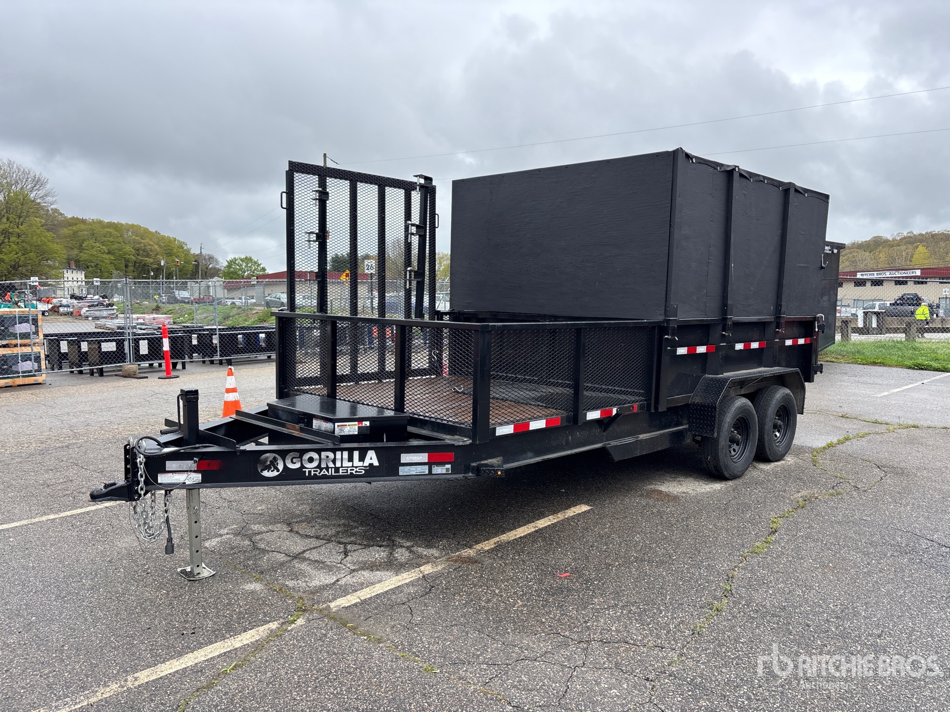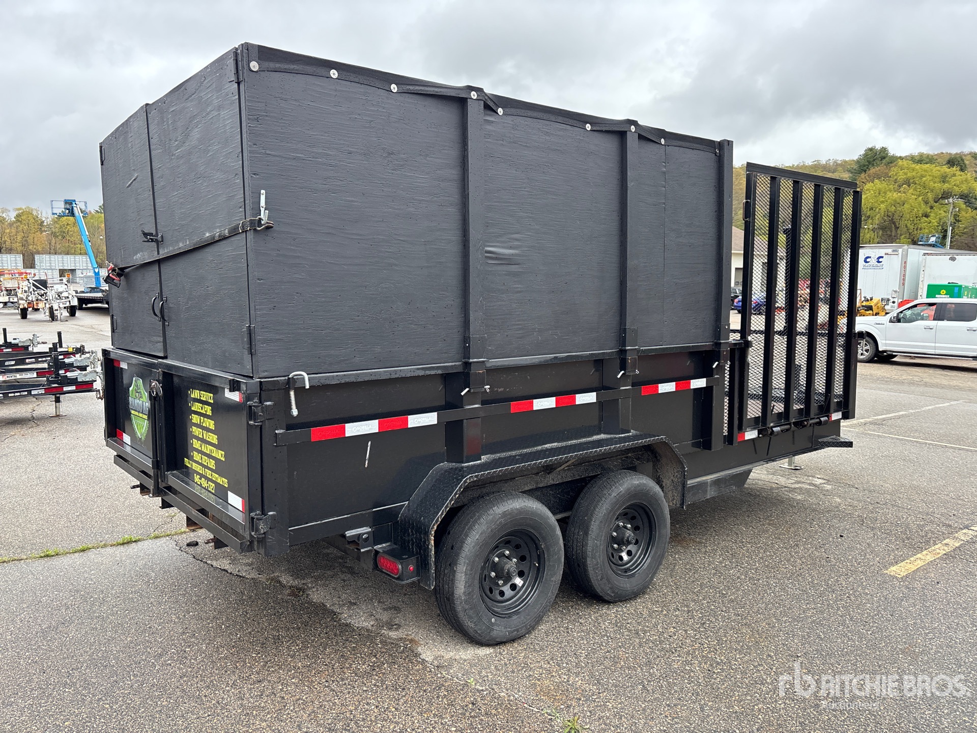 Located in Lane 24 Spot 36, Ball Hitch, Spring Suspension, Electric Brakes, 10 ft Body, 24 in Side Walls, Steel Body, Split Swing Tailgate, 225/75R15 Tires, 9985 lb GVWR