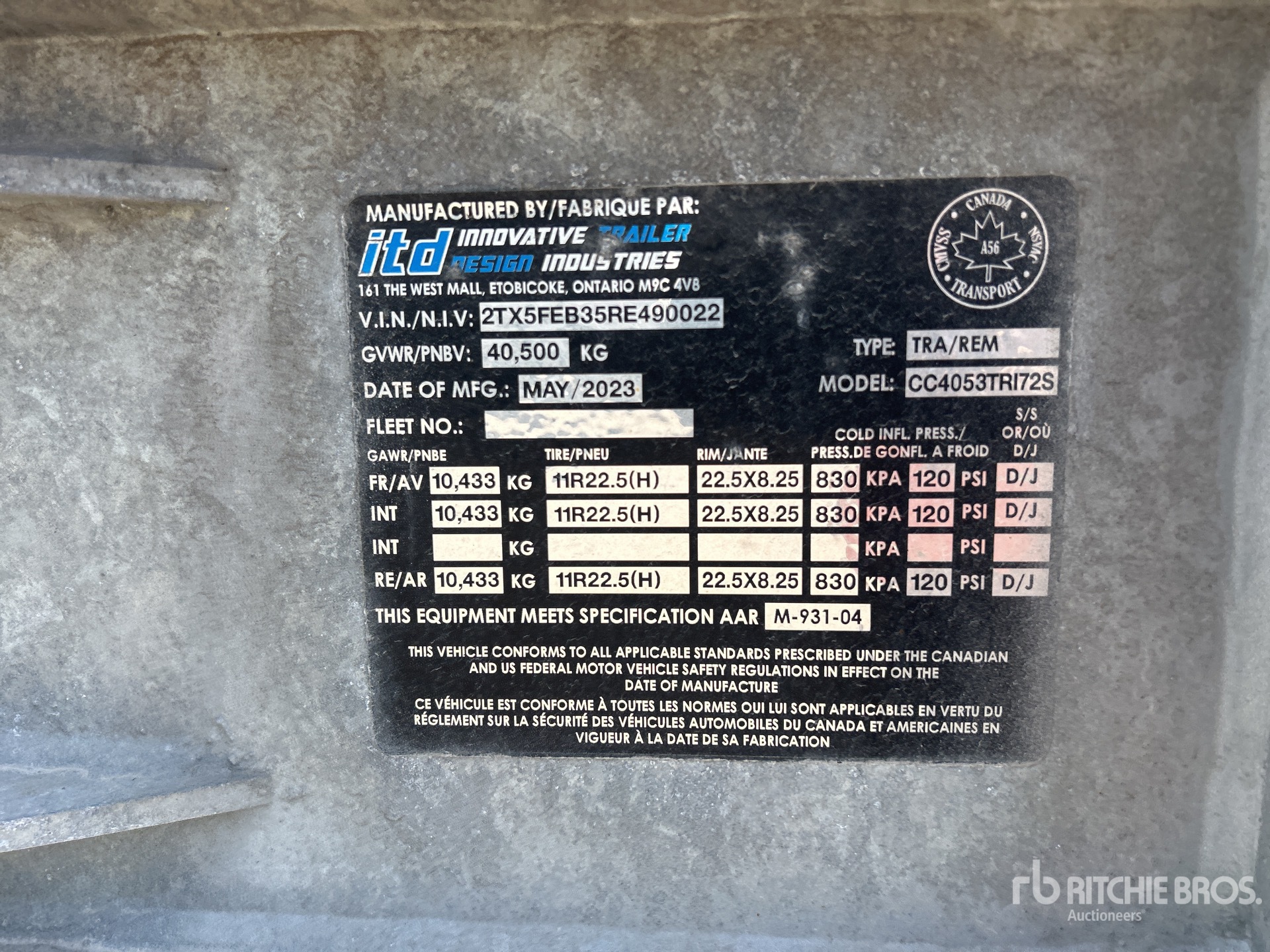 The detailed equipment information is limited in scope, and Ritchie Bros. Auctioneers has not inspected any aspects or components of the equipment other than those expressly set forth herein. Unless expressly stated, we make no representations or warranties, express or implied, concerning the equipment or its components, including without limitation any representations or warranties concerning functionality, conformity or compliance with any safety standard or requirement of any applicable authority or regulatory body, fitness for any particular purpose, or merchantability. You are strongly advised to perform your own detailed inspection of the equipment prior to bidding.