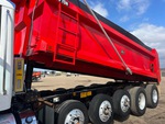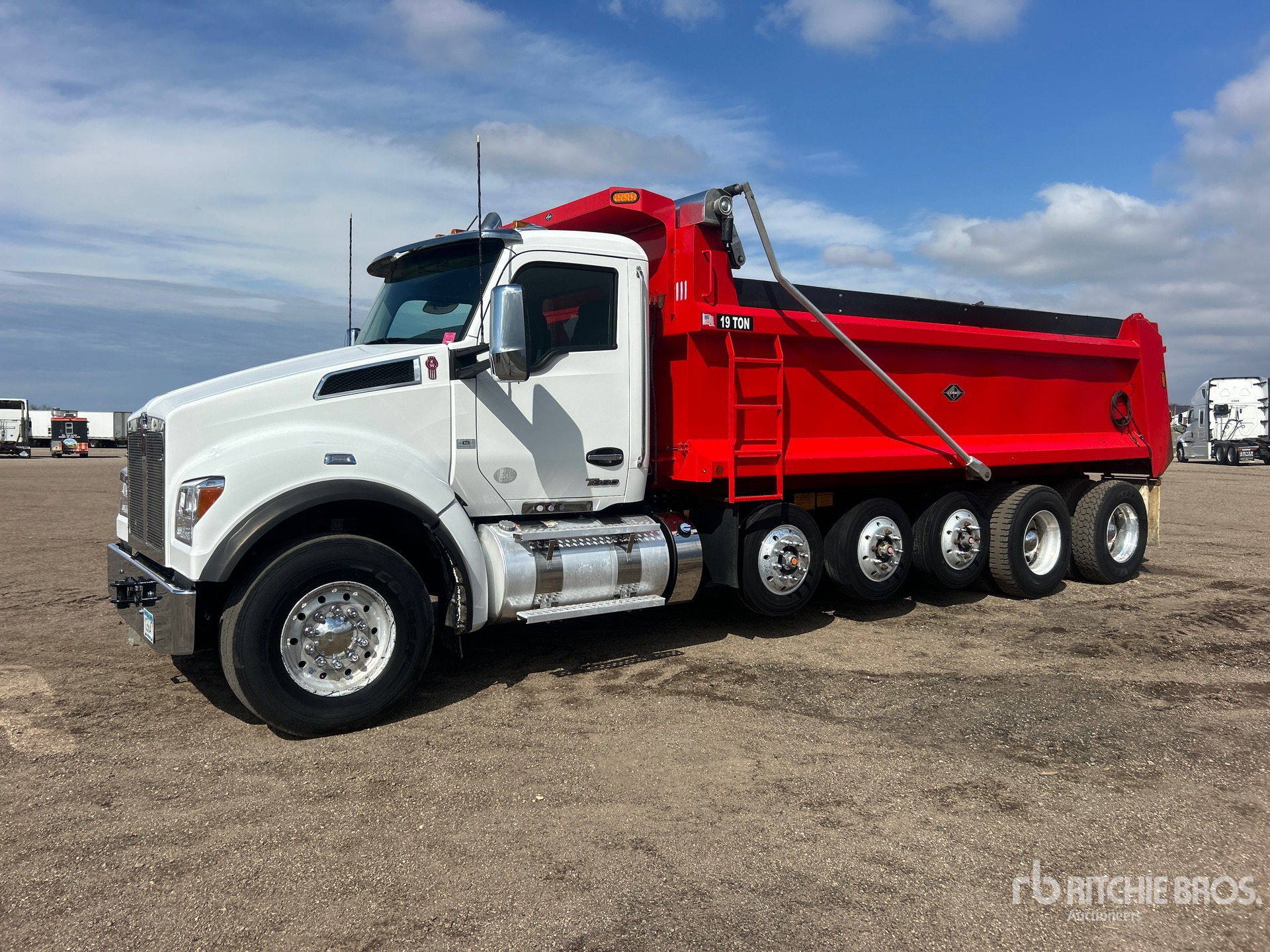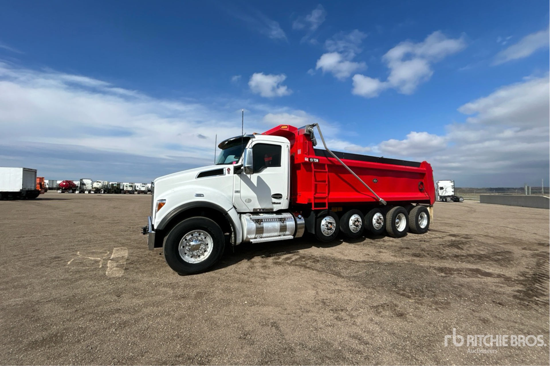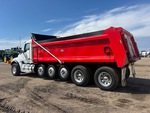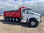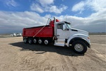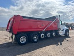 Located in Lane 9 Spot 2, Paccar MX-13 6 Cylinder 12 L Diesel 456 hp Engine, 2023 US EPA Label, Requires Diesel Exhaust Fluid, 4311 Engine hrs, Engine Brake, Allison Automatic Transmission, Double Differential Locks, 20000 lb Front Axle, 60000 lb Rears, 89000 lb GVWR, Aluminum Outer Wheels, 385/65R22.5 Front Tires, 11R22.5 Rear Tires, 3 Steerable Air Lift Pusher Axle, Neway Air Ride Suspension, 283 in Wheelbase, J-Craft 20 ft 6 in Long x 4 ft High Steel Body, 19 ton, Capacity, Heated Box, Bed Vibrator, Electric Roll Tarp