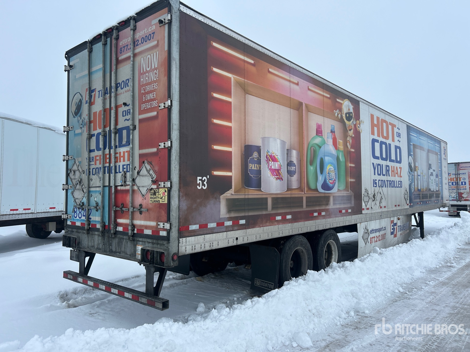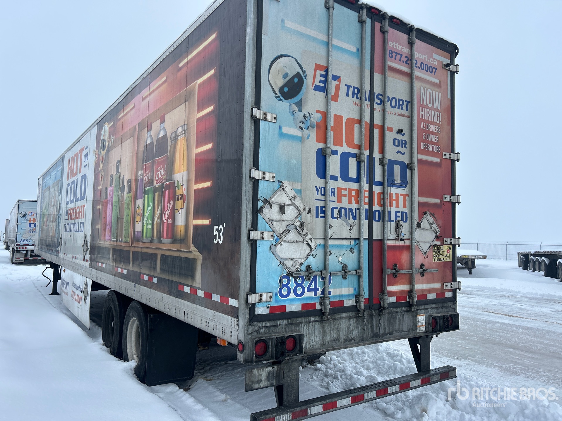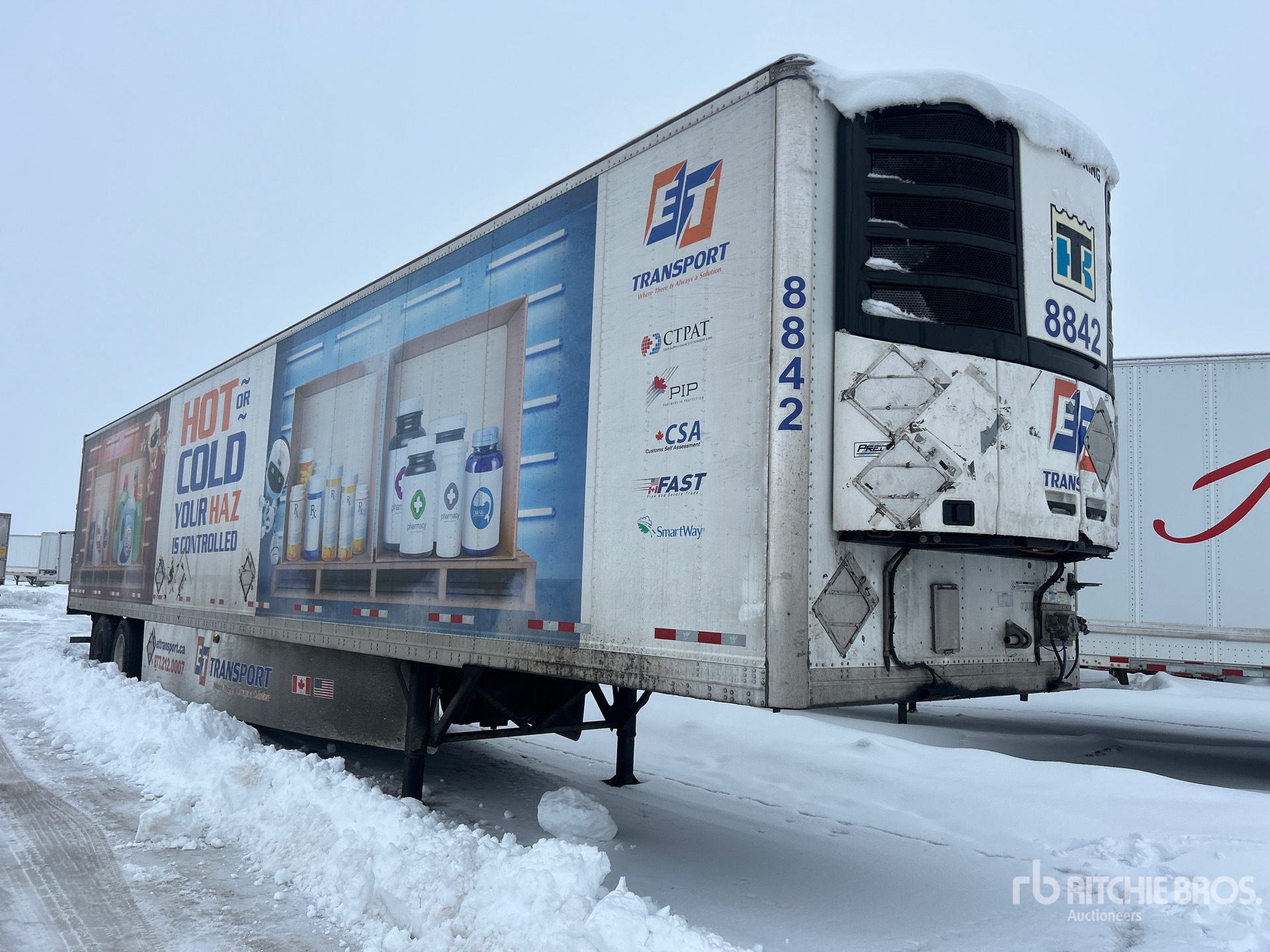 Thermo King C-600 Refrigeration Unit, Air Ride Sliding Suspension, Side Skirts, Ducted Floor, Swing Door, 11R22.5 Tires, 74173 lb GVWR