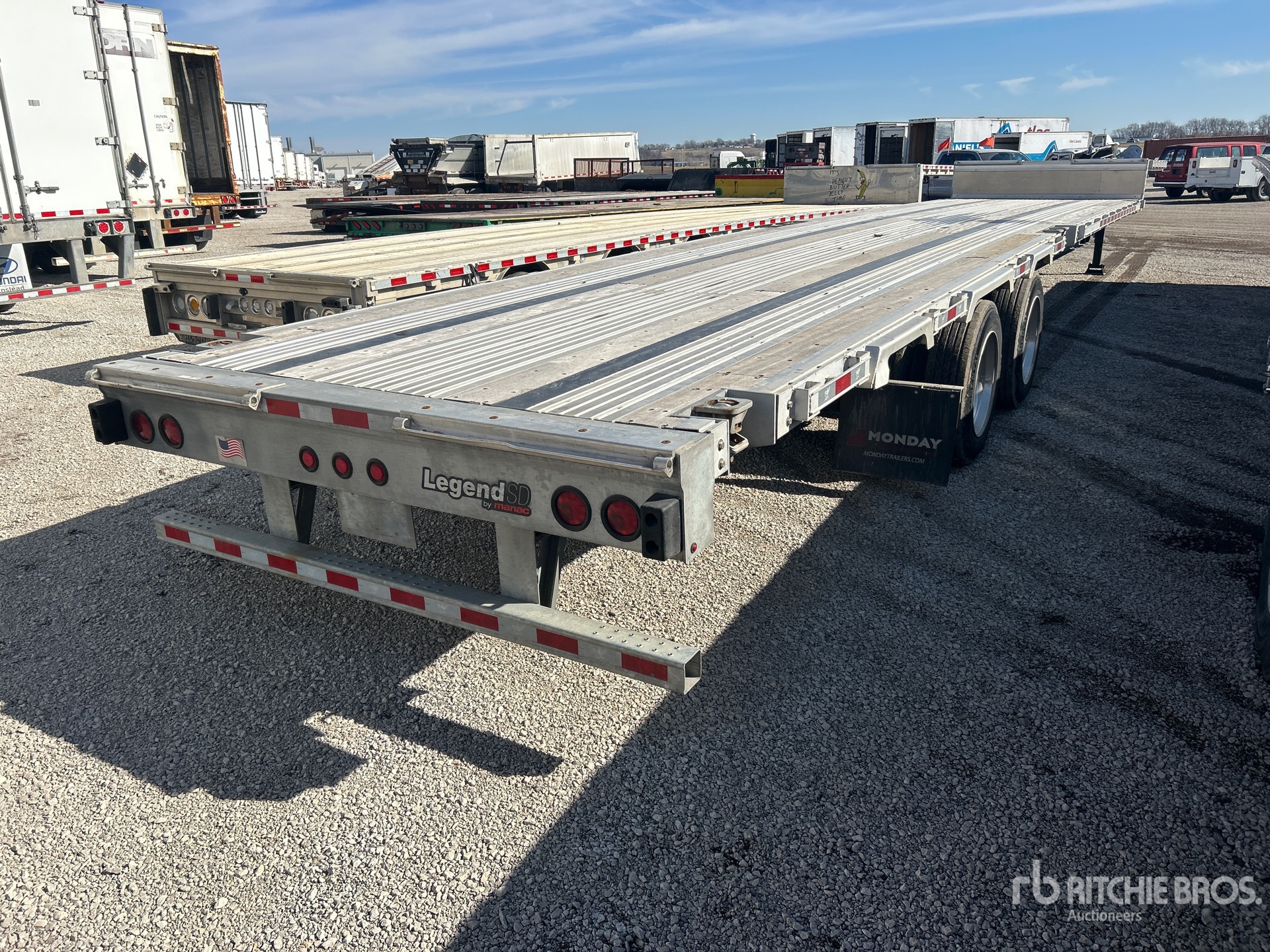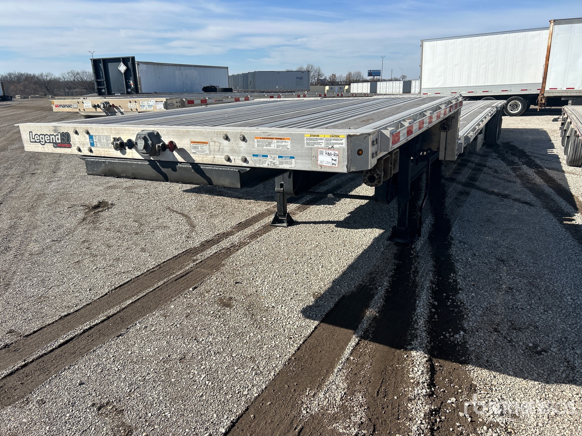 Aluminum/Steel Combination Frame, Air Ride Suspension, Sliding Suspension, 3-Way Container Pins, 11 ft Upper Deck, 42 ft Main Deck, 102 in Overall Deck Width, Aluminum w/Wood Strips Flooring, Aluminum Wheels, 255/70R22.5 Tires, 80000 lb GVWR