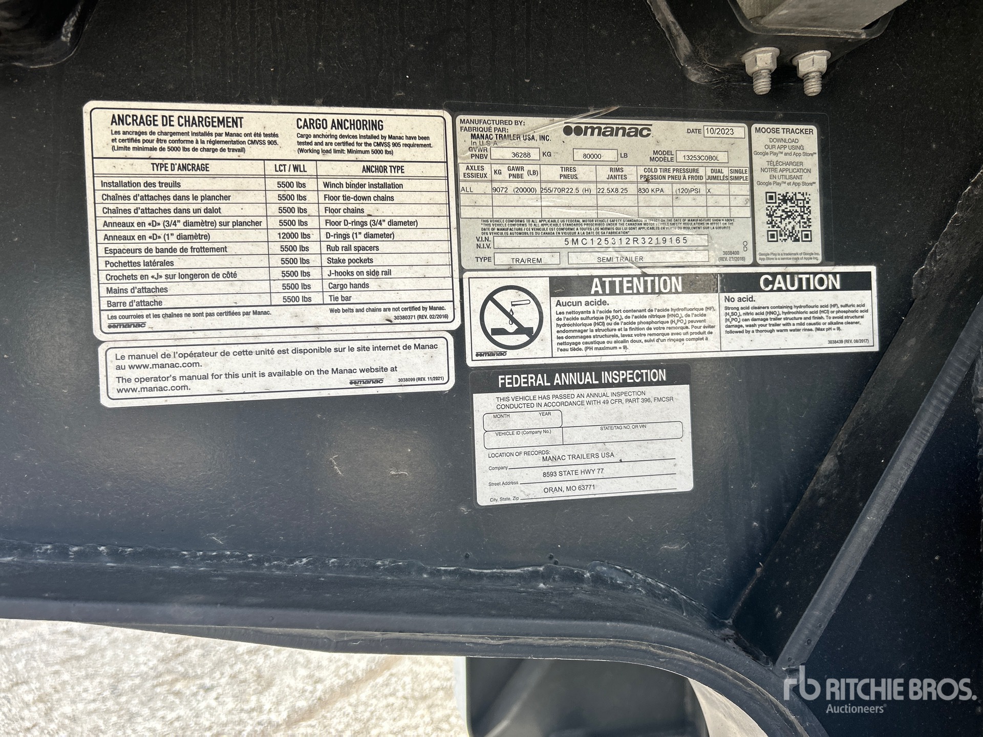 The detailed equipment information is limited in scope, and Ritchie Bros. Auctioneers has not inspected any aspects or components of the equipment other than those expressly set forth herein. Unless expressly stated, we make no representations or warranties, express or implied, concerning the equipment or its components, including without limitation any representations or warranties concerning functionality, conformity or compliance with any safety standard or requirement of any applicable authority or regulatory body, fitness for any particular purpose, or merchantability. You are strongly advised to perform your own detailed inspection of the equipment prior to bidding.