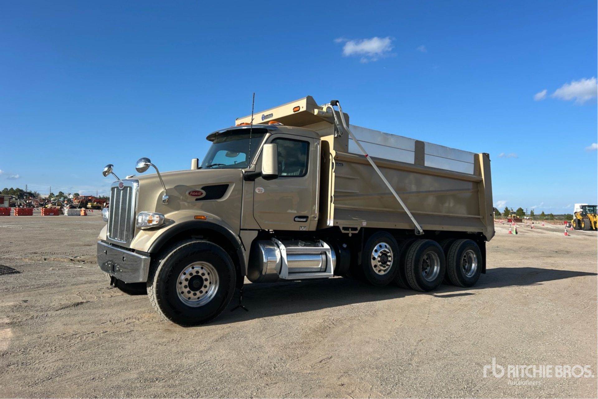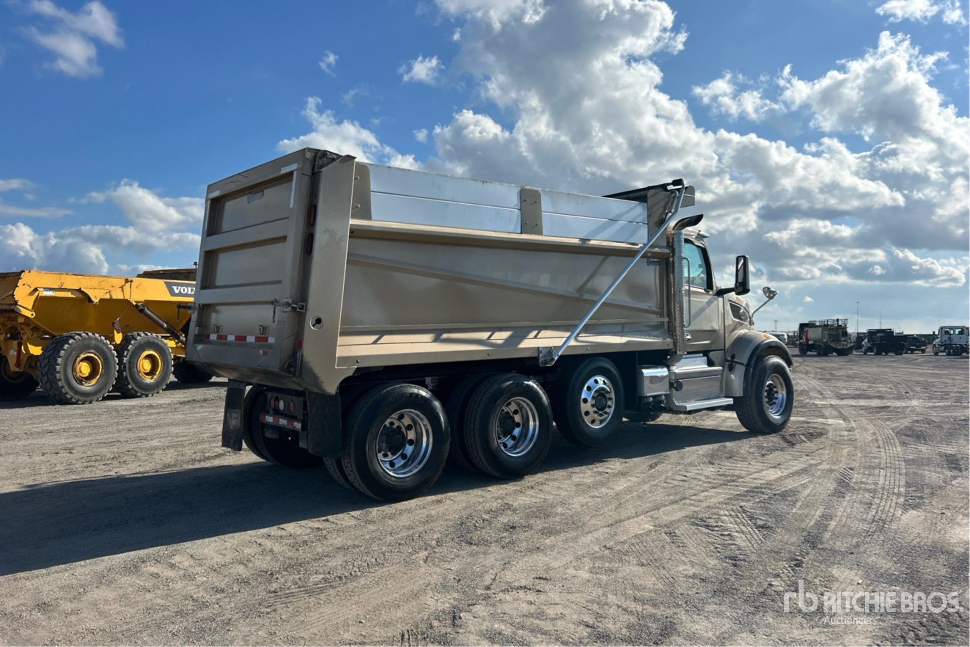 Paccar 6 Cylinder Diesel Engine, 2023 US EPA Label, Requires Diesel Exhaust Fluid, 4084 Engine hrs, Engine Brake, Automated Transmission, Double Differential Locks, 20000 lb Front Axle, 46000 lb Rears, 78350 lb GVWR, Aluminum Wheels, 425/65R22.5 Front Tires, 11R22.5 Rear Tires, Dual Steering Boxes, Double Frame, Air Trac Air Ride Suspension, 223 in Wheelbase, PTO, Godwin {values=[16], unitId=14} Long x 5 ft 6 in High Steel Body, Round Bottom, Electric Roll Tarp