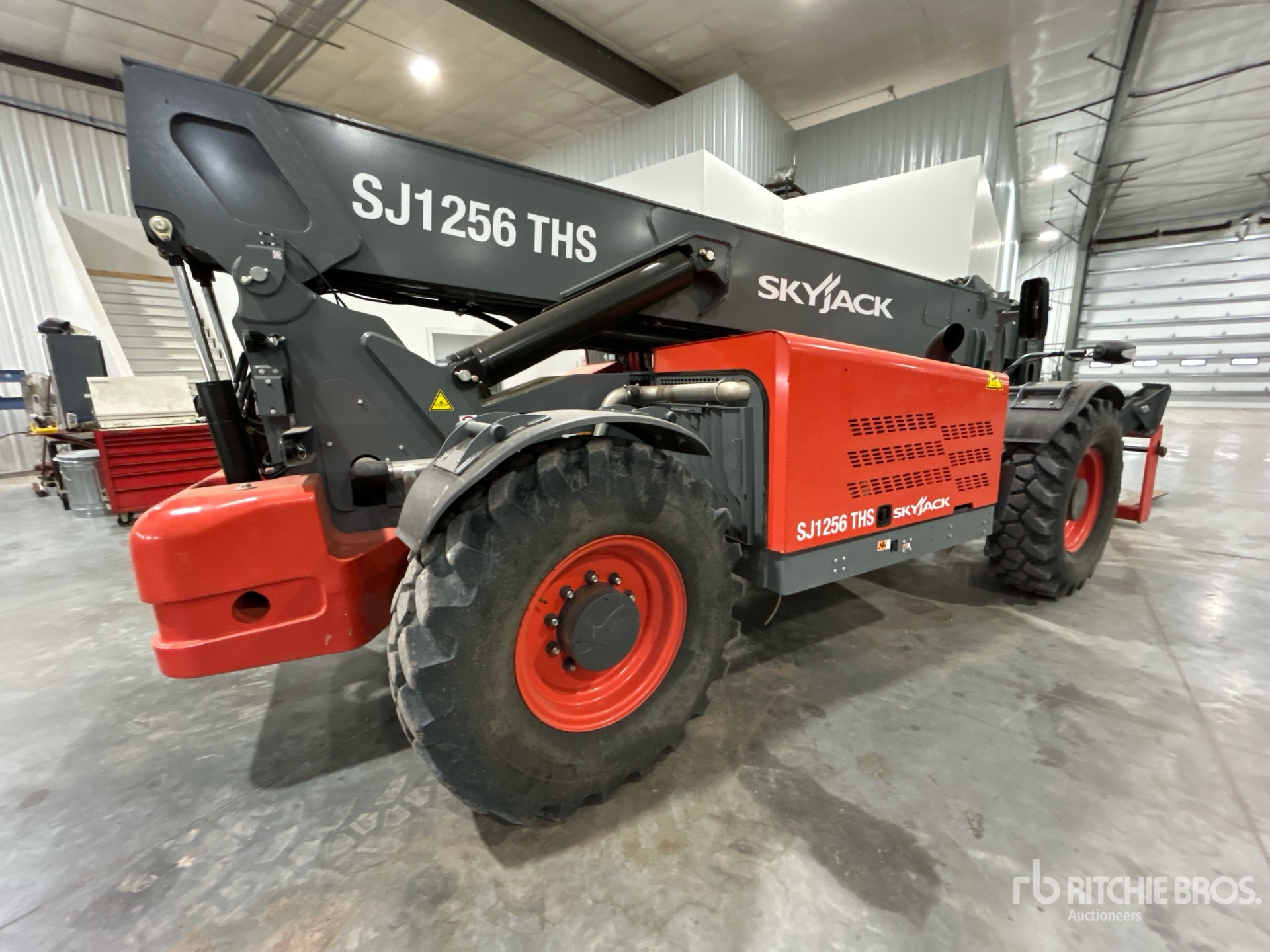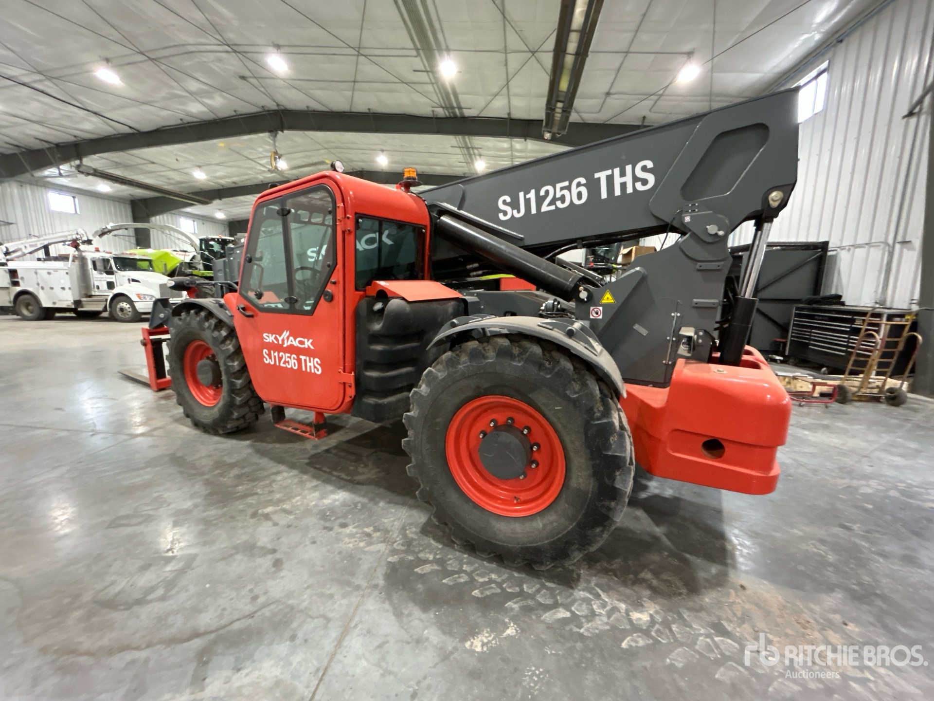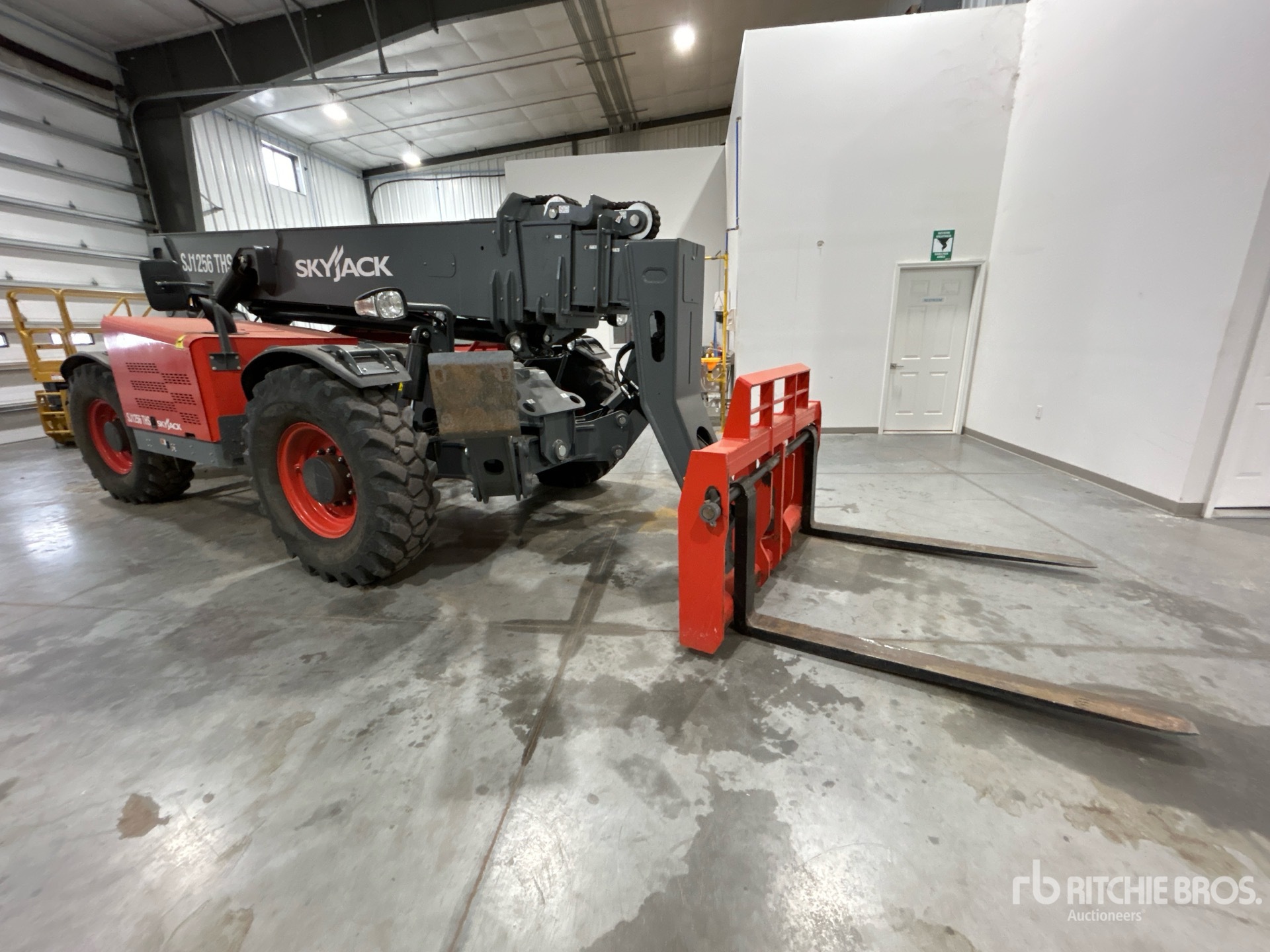 Enclosed Cab, Air Conditioner, 56 ft Max Lift Height, 12000 lb Max Lift Capacity, 2023 US EPA Label, Requires Diesel Exhaust Fluid, 60 in Forks, Manual Coupler, Outriggers, Frame Leveling, Auxiliary Hydraulic Plumbing, 14.00-24 Foam Filled Tires