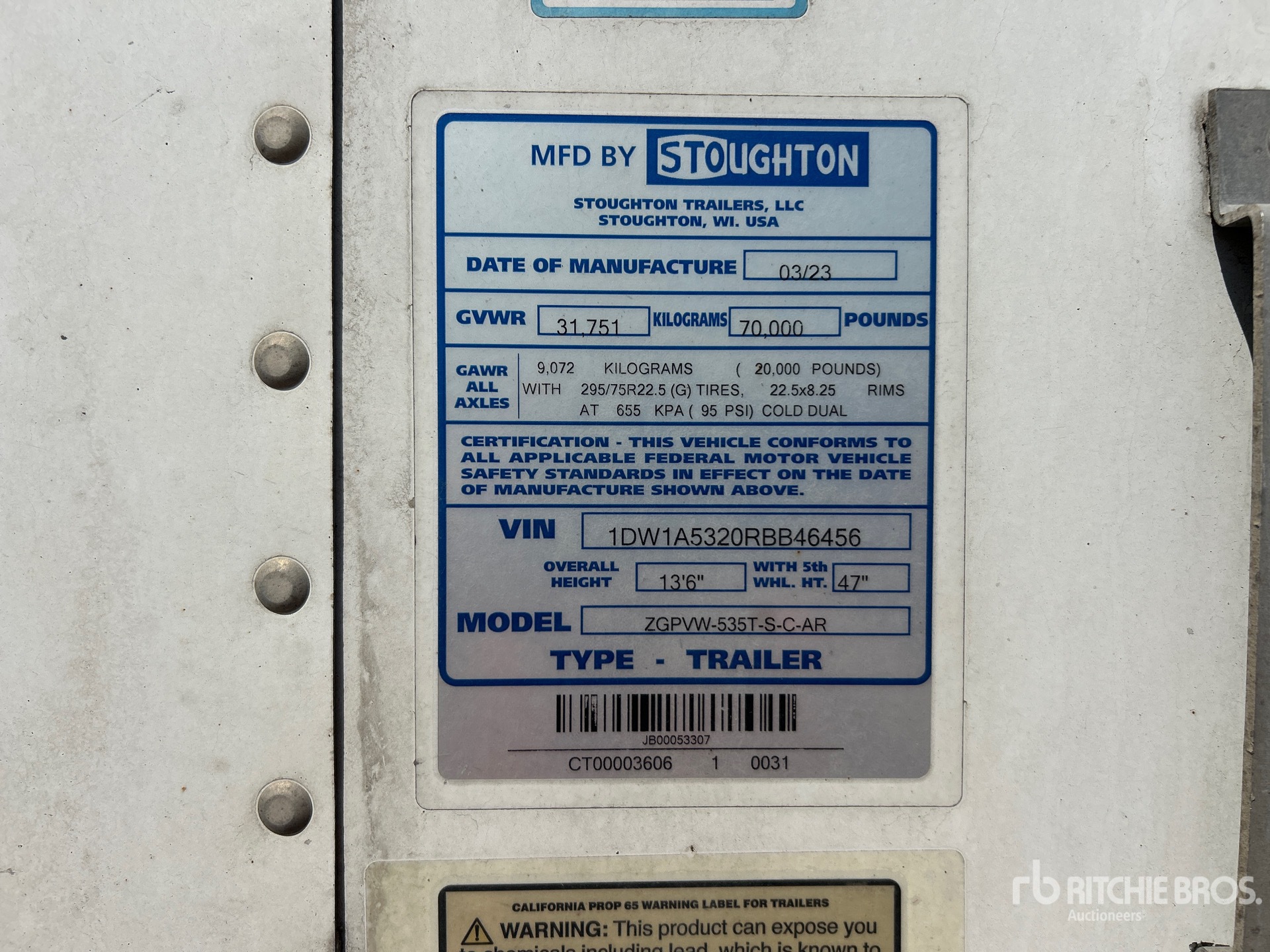 Air Ride Sliding Suspension, Side Skirts, Hardwood Floor, Swing Door, 295/75R22.5 Tires 70000 lb GVWR