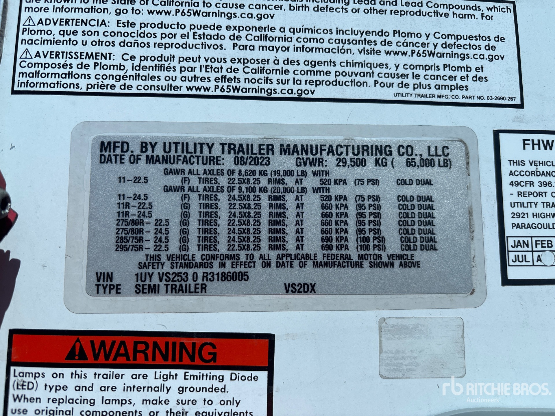 Air Ride Sliding Suspension, Hardwood Floor, Swing Door, 295/75R22.5 Tires 65000 lb GVWR