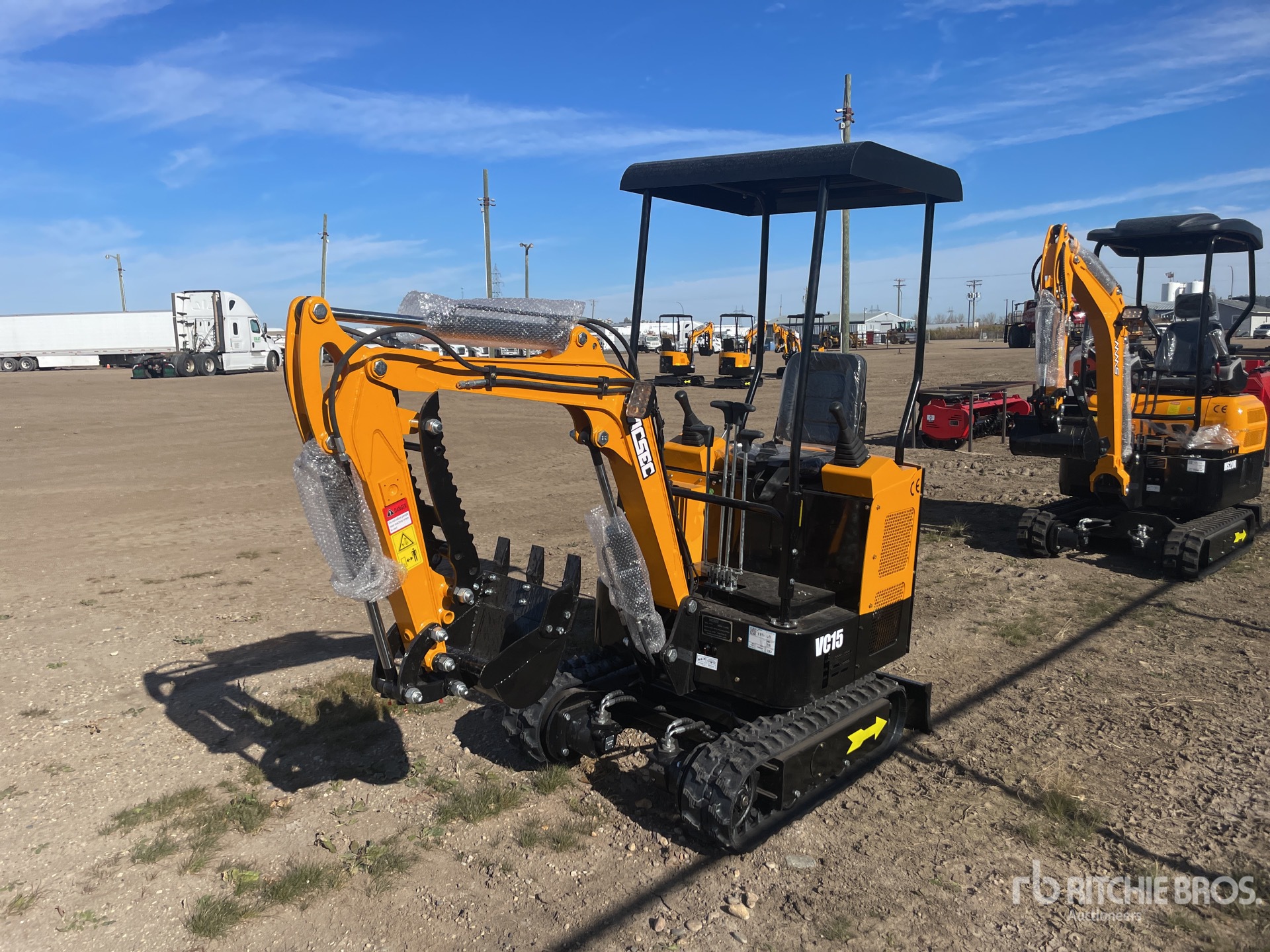 2 ft 7 in Stick, Auxiliary Hydraulic Plumbing, Backfill Blade, 7 in Rubber Tracks, 16 in Digging Bucket, Manual Thumb