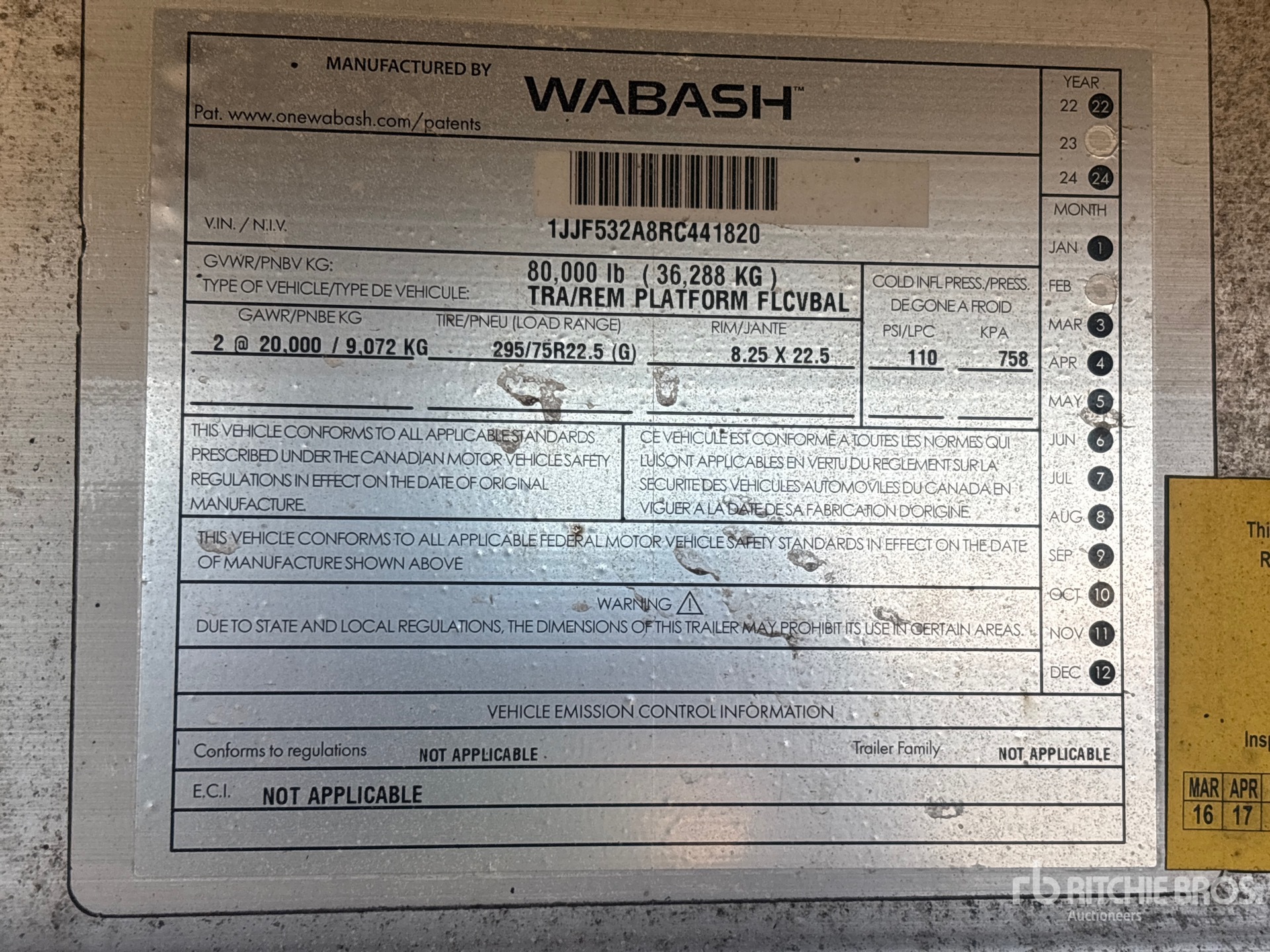 Aluminum Frame, Air Ride Suspension, 97 in Deck Width, 101 in Overall Width, Aluminum w/Wood Strips Flooring, Aluminum Outer Wheels, 295/75R22.5 Tires, 80000 lb GVWR