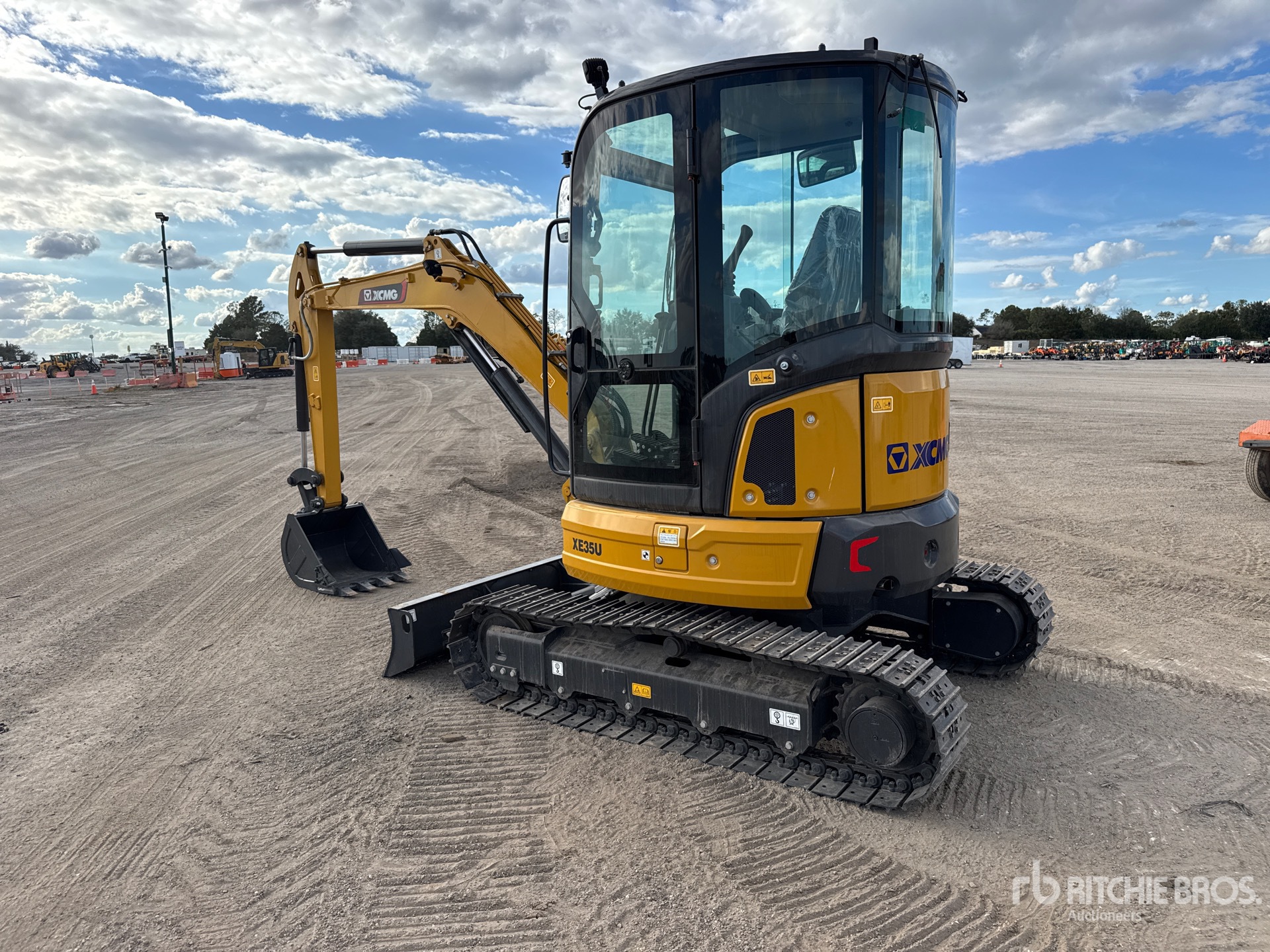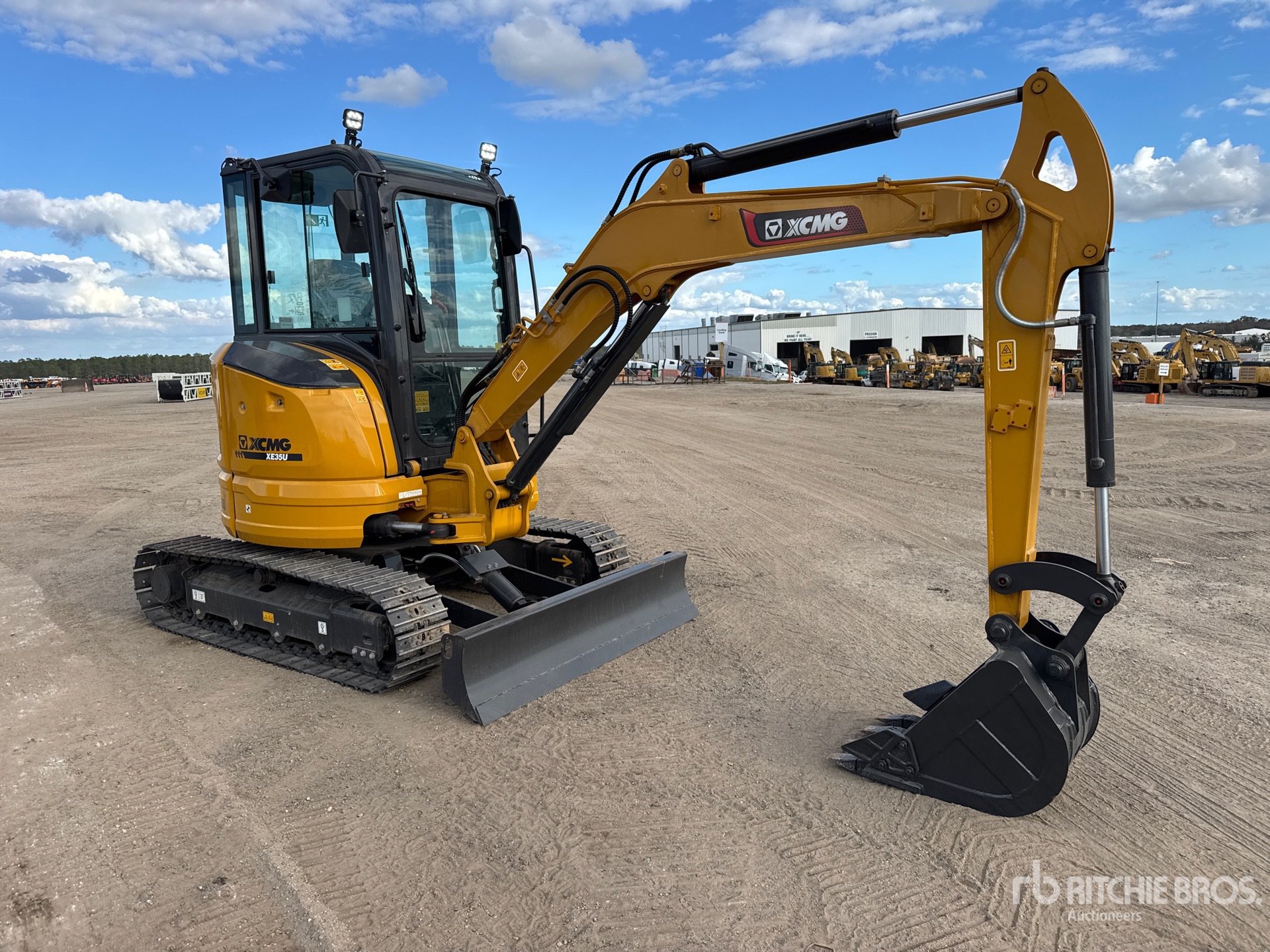 Enclosed Cab, Air Conditioner, Swing Boom, 4 ft 5 in Stick, Backfill Blade, 12 in Double Grouser Track Shoes, 22 in Digging Bucket