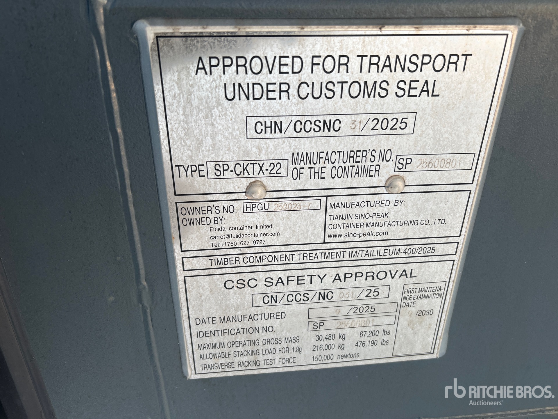 A qualified Ritchie Bros. employee collected detailed equipment information and performed functional tests on the key components of this asset. You, or a proxy, may also inspect any items on site prior to bidding on auction day.
