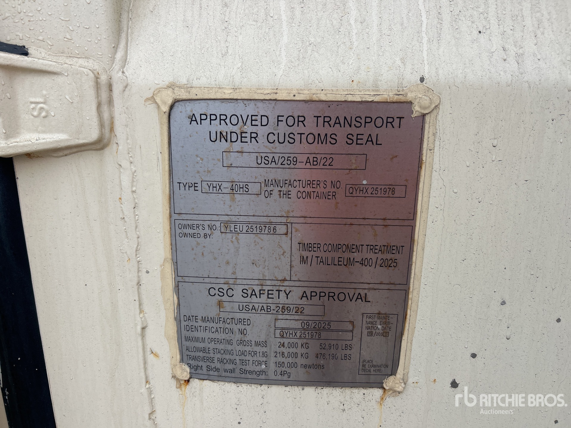A qualified Ritchie Bros. employee collected detailed equipment information and performed functional tests on the key components of this asset. You, or a proxy, may also inspect any items on site prior to bidding on auction day.