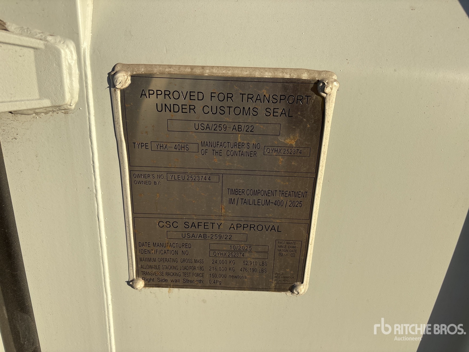 A qualified Ritchie Bros. employee collected detailed equipment information and performed functional tests on the key components of this asset. You, or a proxy, may also inspect any items on site prior to bidding on auction day.