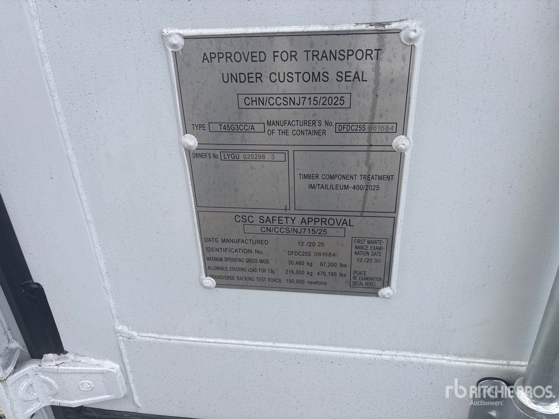 A qualified Ritchie Bros. employee collected detailed equipment information and performed functional tests on the key components of this asset. You, or a proxy, may also inspect any items on site prior to bidding on auction day.