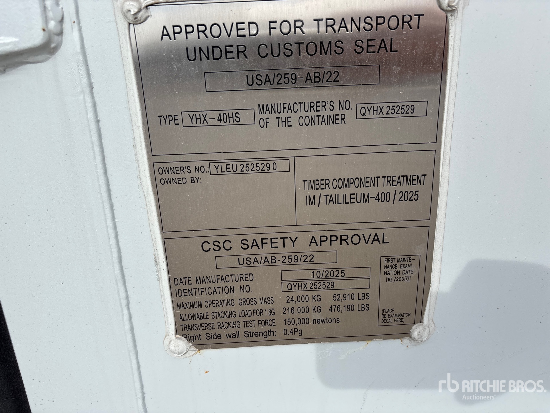 A qualified Ritchie Bros. employee collected detailed equipment information and performed functional tests on the key components of this asset. You, or a proxy, may also inspect any items on site prior to bidding on auction day.